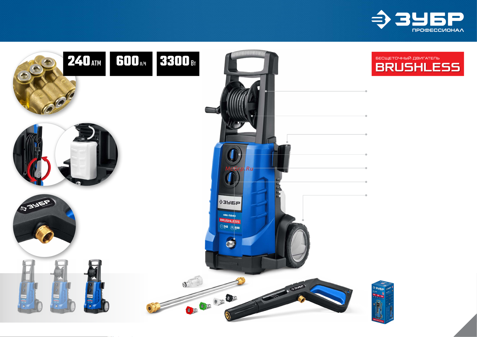ЗУБР 3300 Вт, 240 Атм, мойка высокого давления АВД-П240 Профессионал интересное: