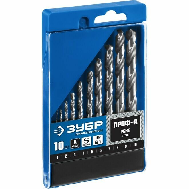 Купить Набор сверл по металлу Профессионал, ЗУБР 10 шт. ( 1-10 мм), класс А, Р6М5
