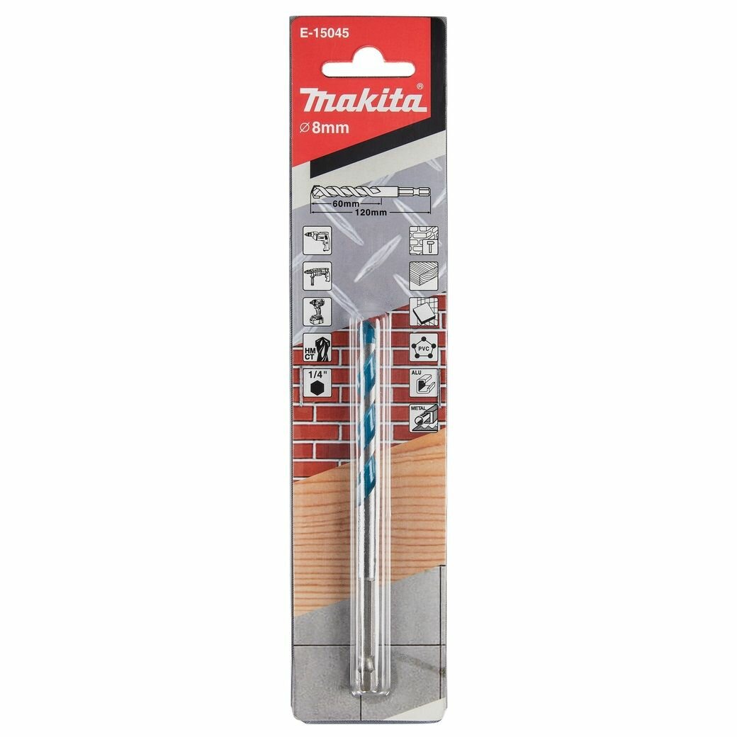 Сверло универсальное Makita 8x60x120, 1/4" (E-15045)