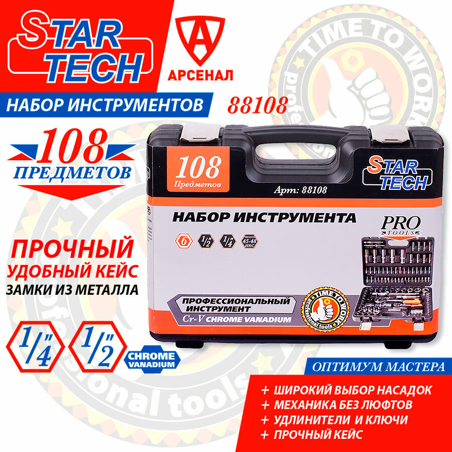 Набор инструментов 108 предметов StarTech 1/2" и 1/4" (головки торцевые, биты), ST88108 интересное: