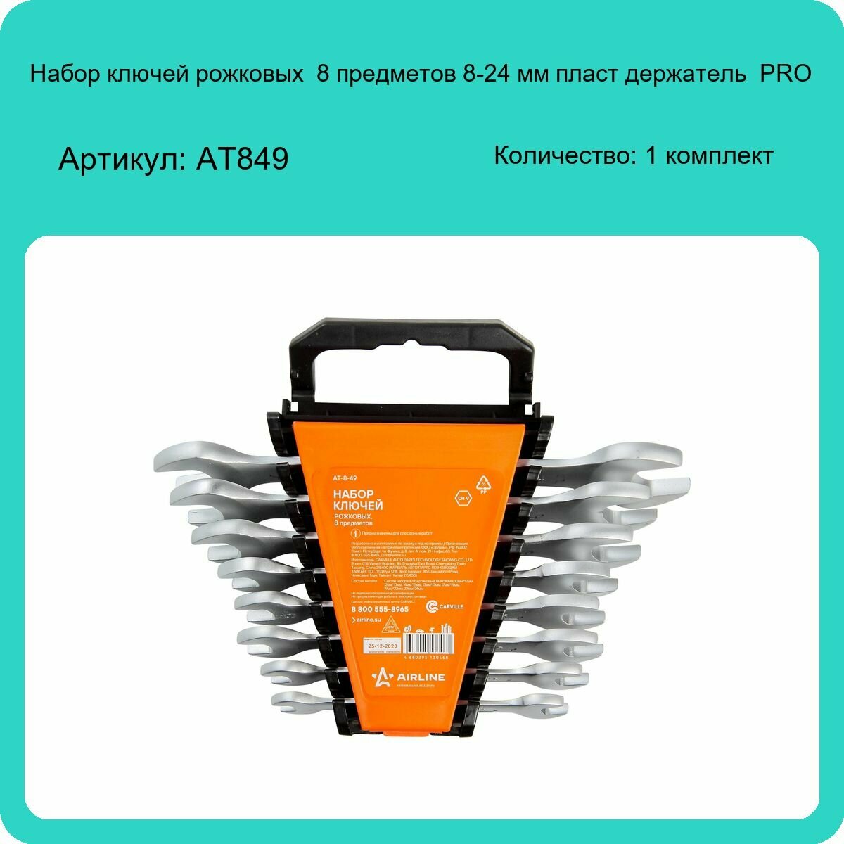 Набор ключей рожковых 8 предм. (8*10,10*12,12*13,14*15,13*17,17*19,19*22,22*24) пласт держат. PRO AT-8-49 AIRLINE