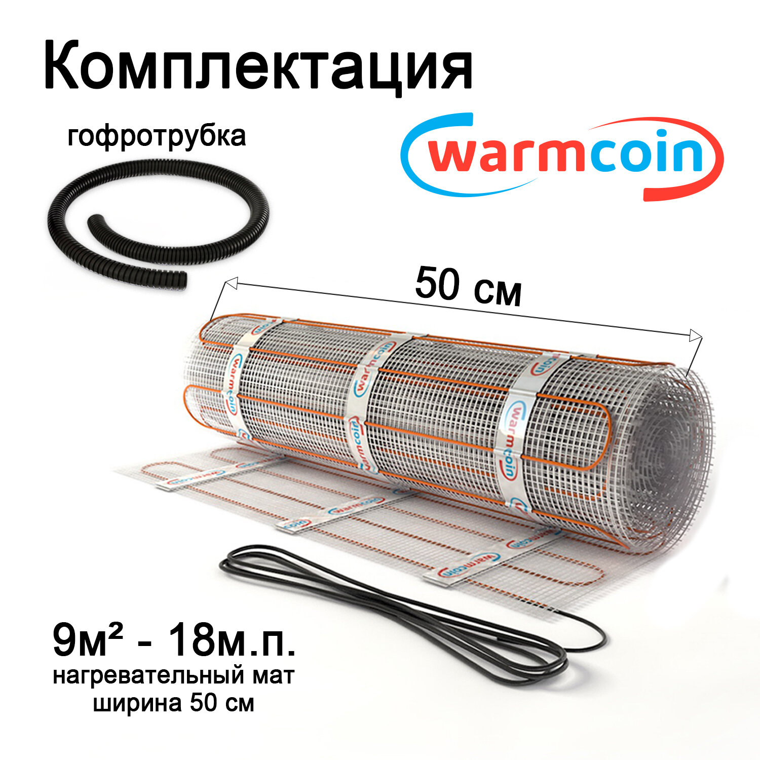 Теплый пол Warmcoin Экомат 9 м.кв. (0.5 х 18 м ) с термостатом