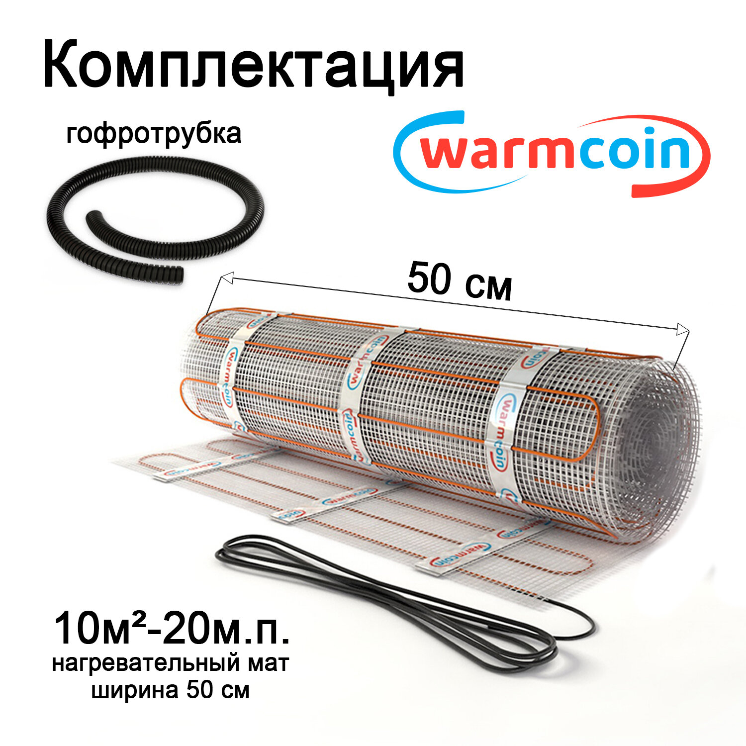 Теплый пол Warmcoin Экомат 10 м.кв. (0.5 х 20 м ) с термостатом