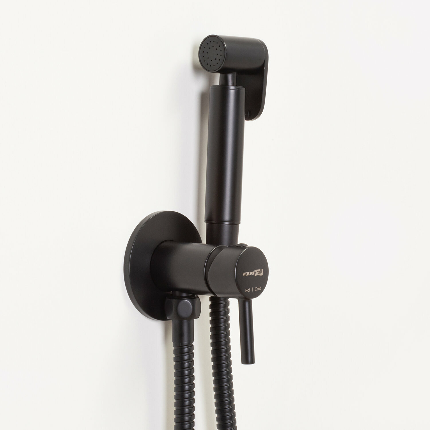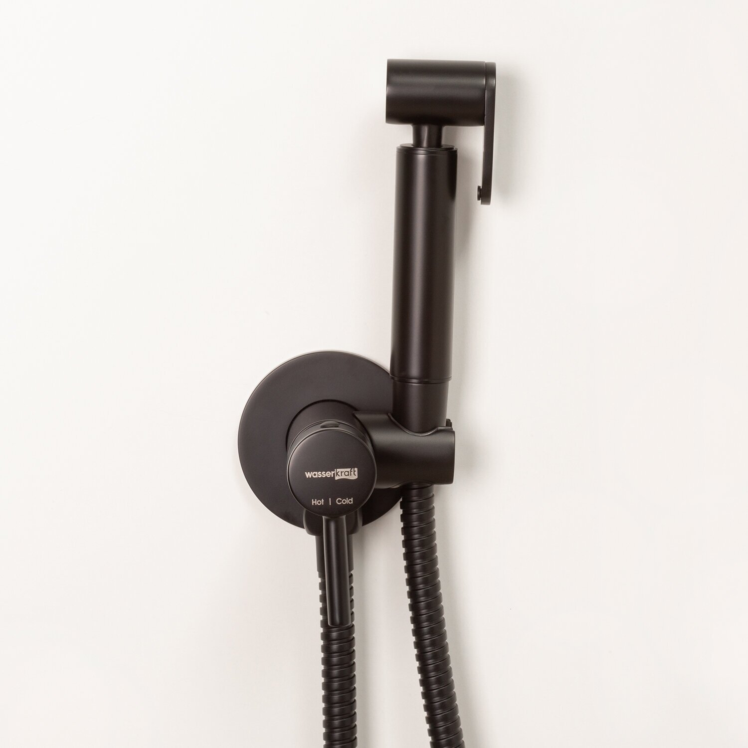 Встраиваемый смеситель для душа с гигиенической лейкой WasserKRAFT A70638 из латуни с покрытием черный Soft-touch