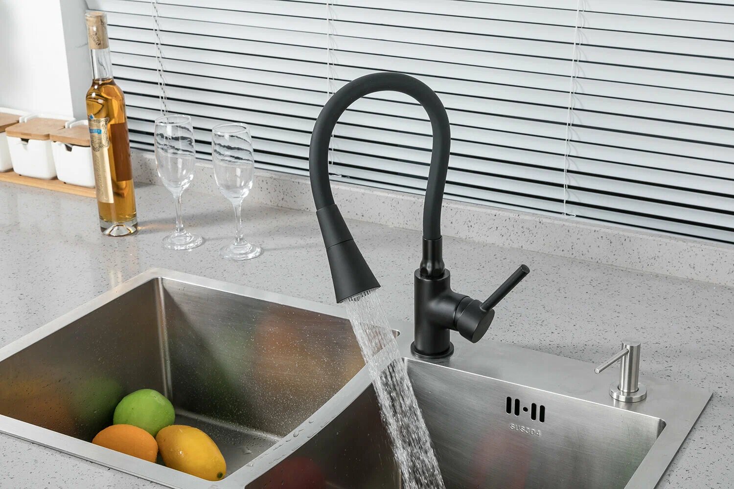 Смеситель для кухни с гибким изливом Frap F4044-6 черный матовый