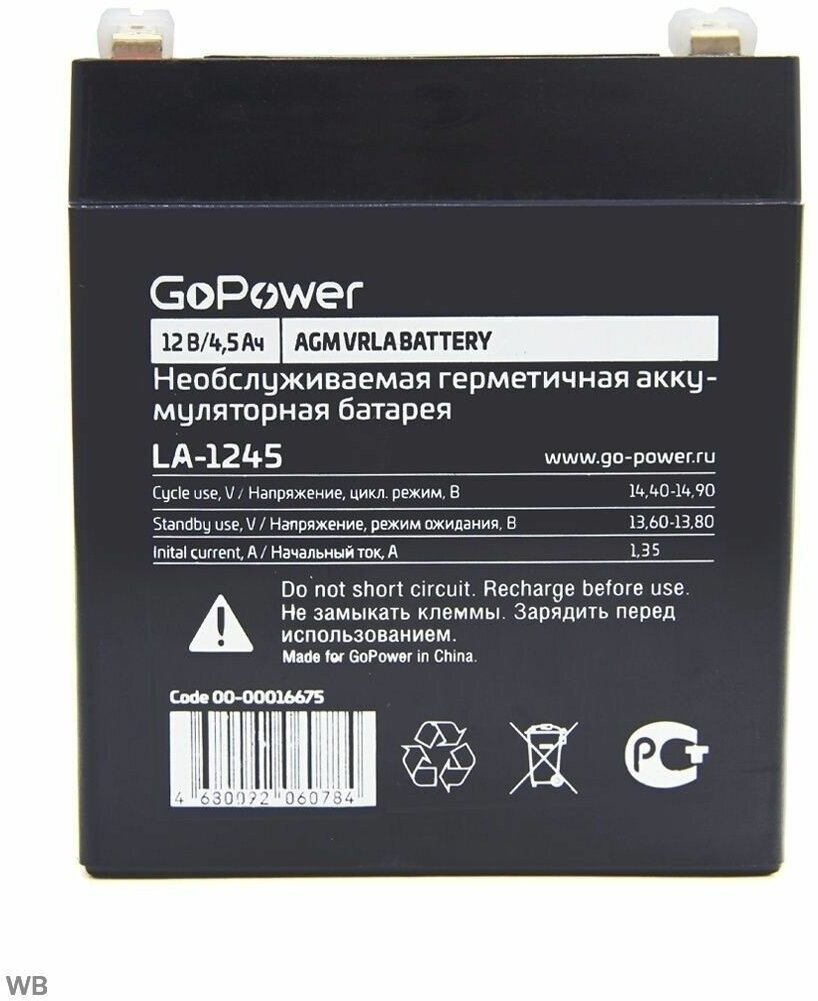 GoPower Батарея аккумуляторная GoPower LA-1245 00-00016675, 12В 4.5А*ч