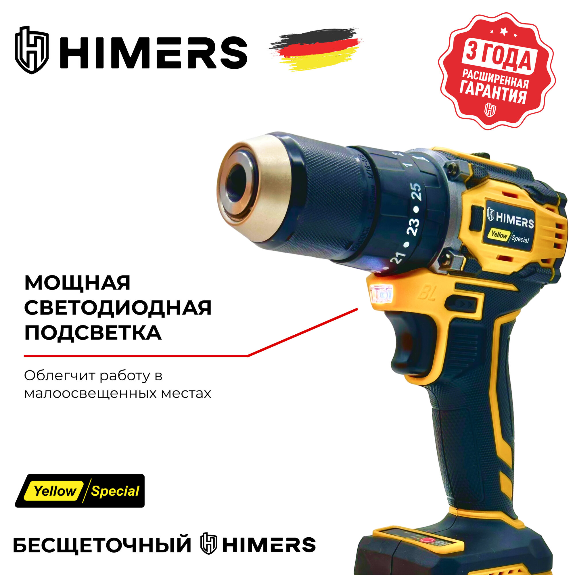 Бесщеточный шуруповерт HIMERS DF65Y-BL аккумуляторный 18V, 2 АКБ по 3 А. ч, 65 Н. м, 10мм патрон, Версия Yellow special / Кейс / многофункциональный для сверления, закручивания 18в