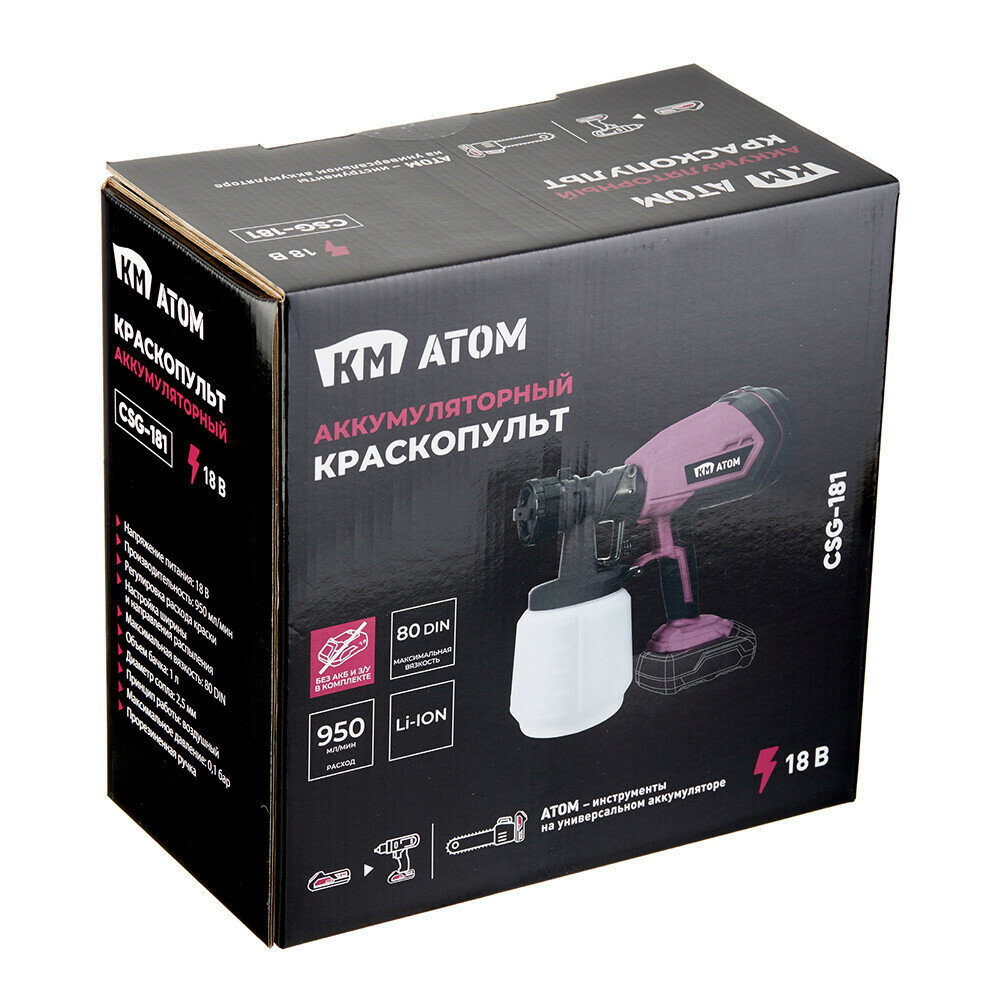 Купить Краскопульт аккумуляторный КМ АТОМ 1 л 18 В Li-Ion без АКБ и ЗУ (CSG-181)