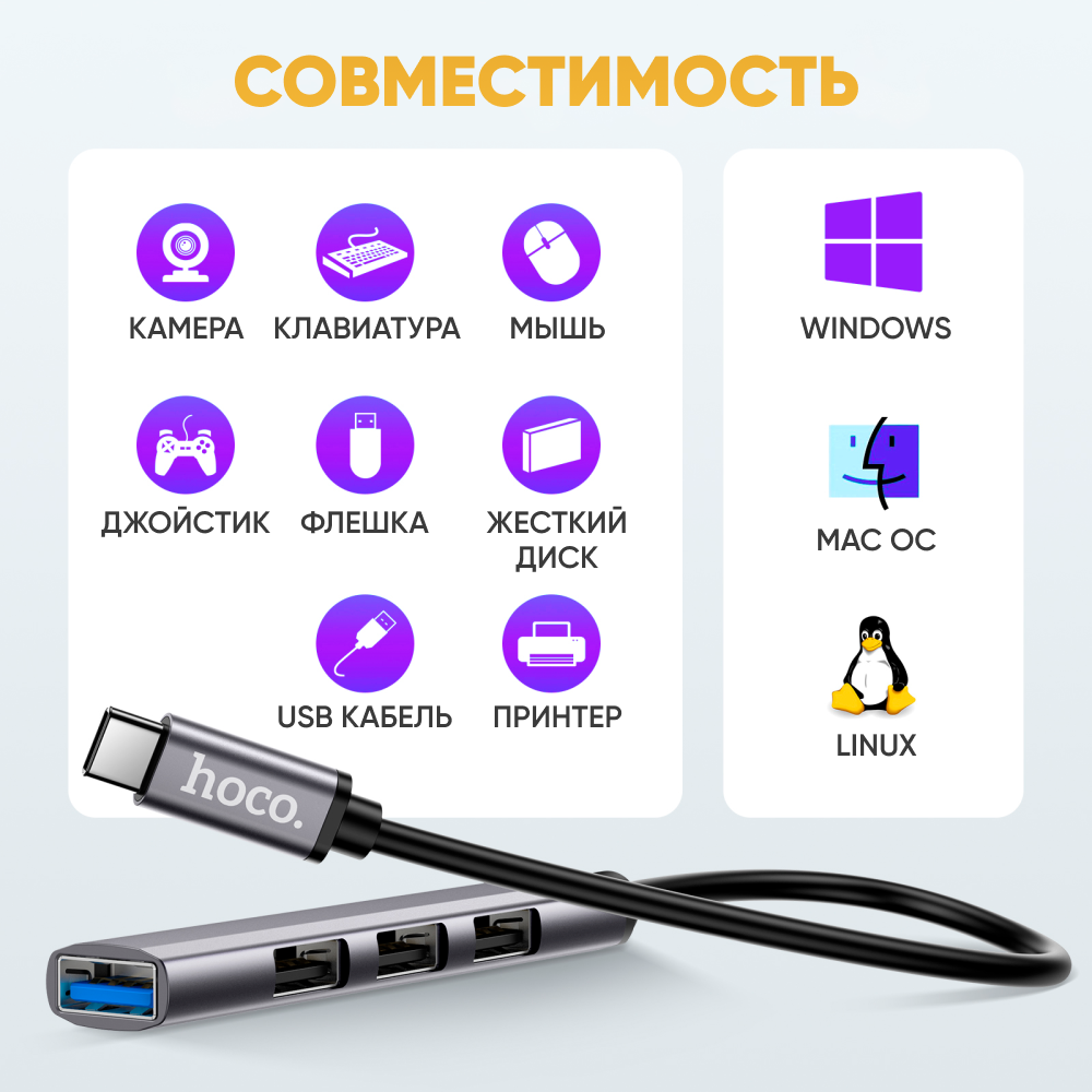 СохранитьПереходник концентратор HOCO HB26 Type-C HUB серый интересное: