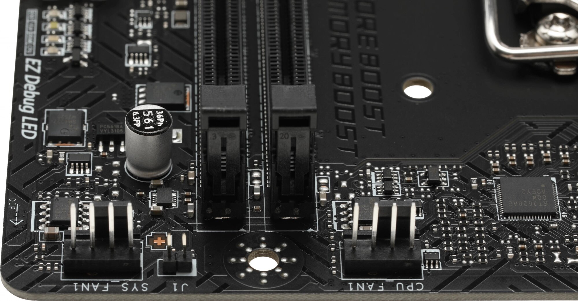 | Плюсы: | Демократичная цена, поддержка современных стандартов памяти. Есть встроенный индикатор EZ Debug. |