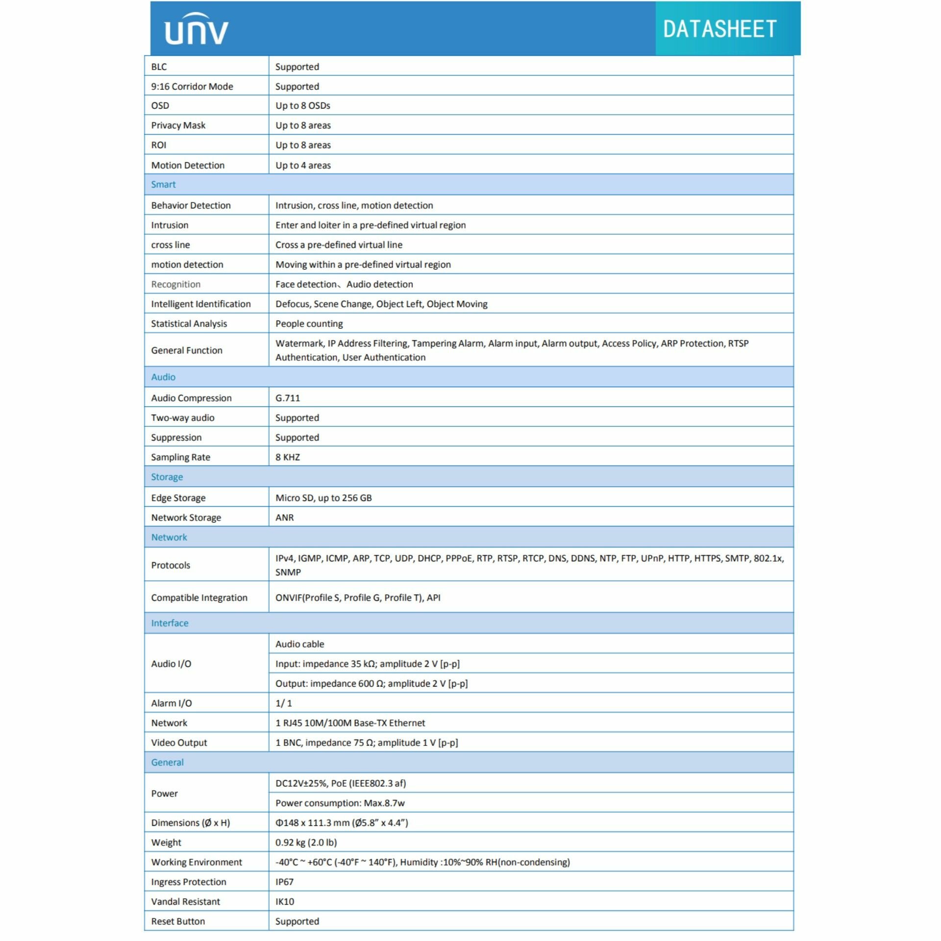 | Функции и особенности | ИК-подсветка / шумоподавление |