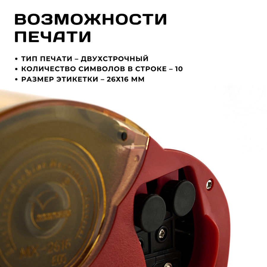 Этикет-пистолет двухстрочный красный Hongsheng MX-2616, размер этикетки: 26х16 мм, 10 знаков