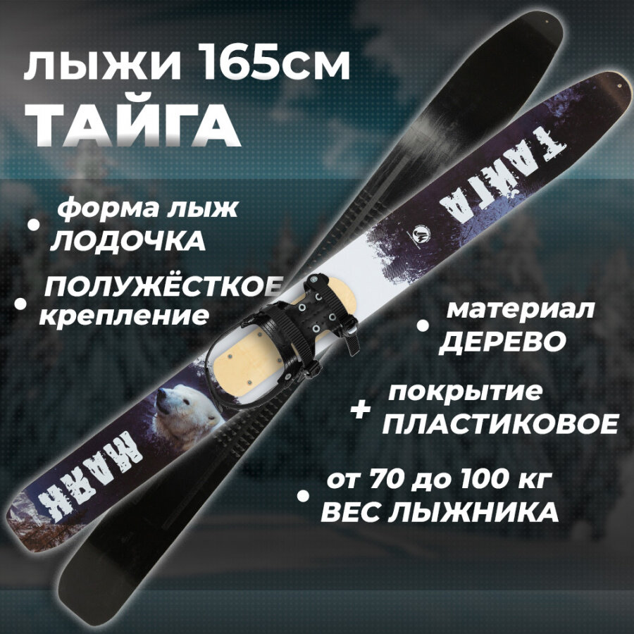 Охотничьи лыжи взрослые Маяк тайга 165х15 см с полужестким креплением, дерево-пластик
