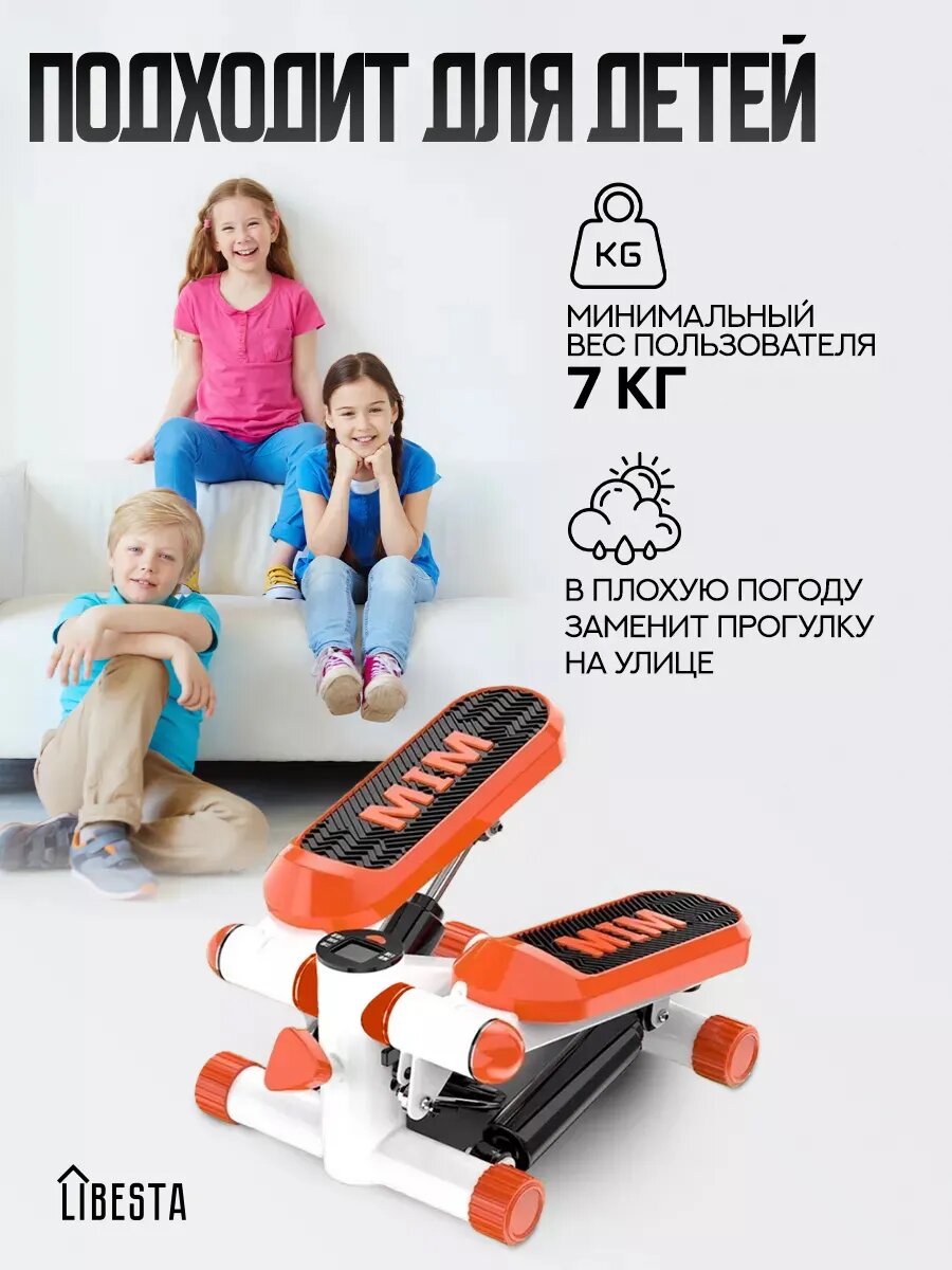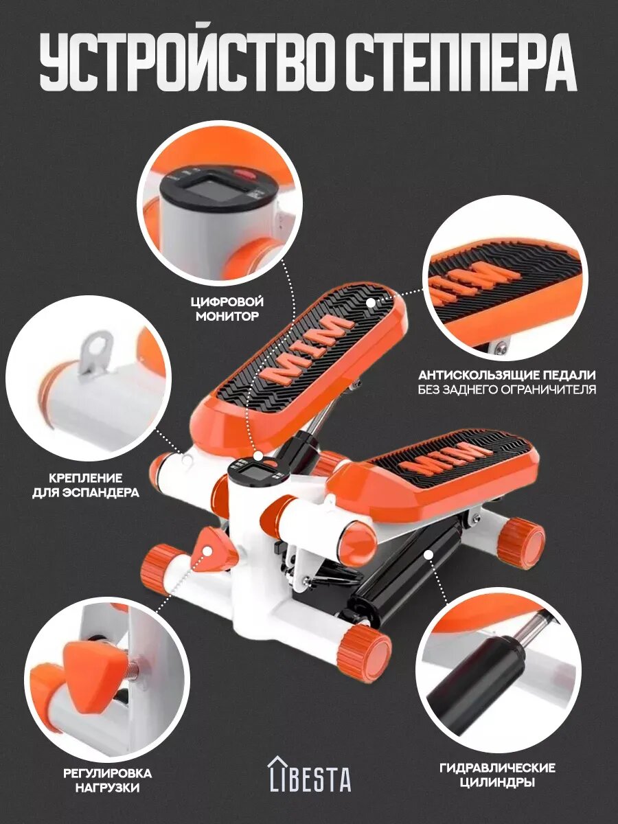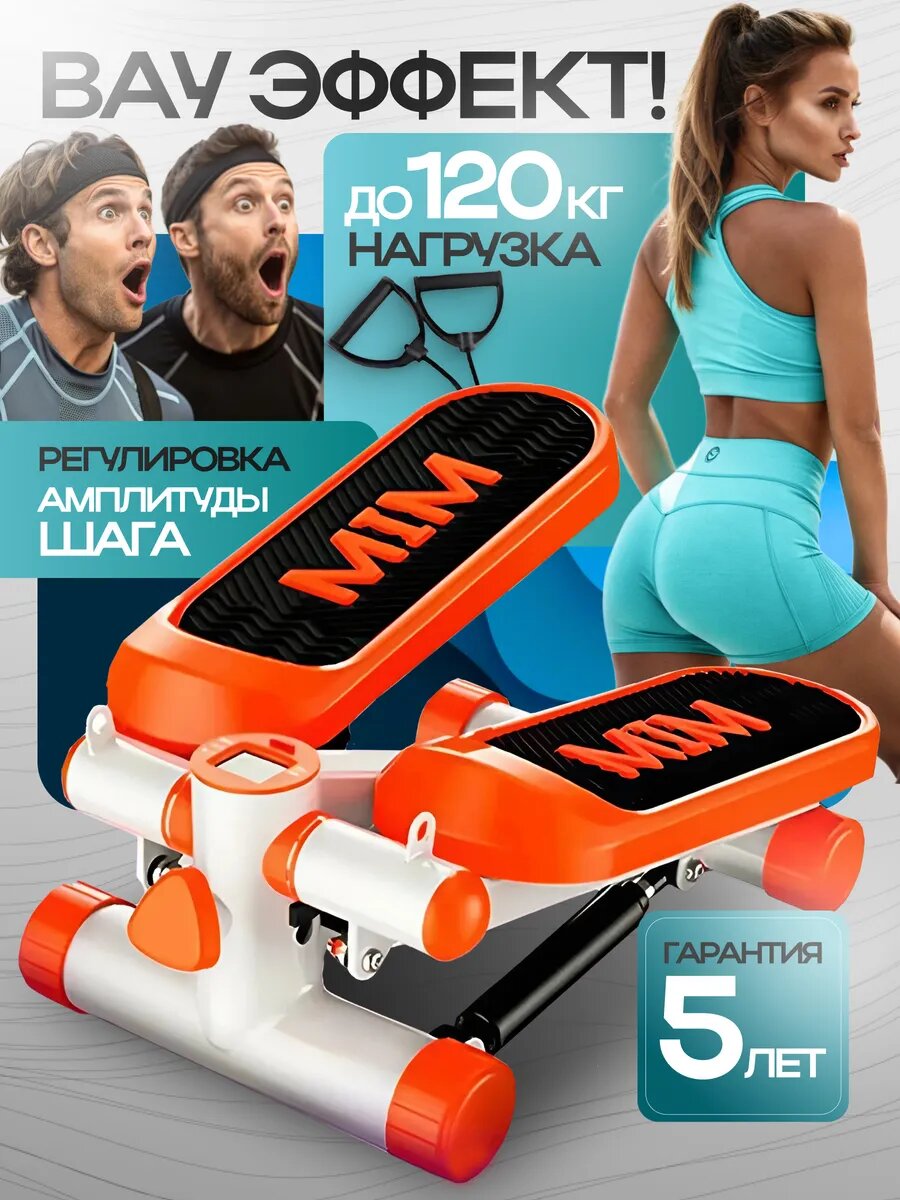 Степпер мини тренажер для ног и ягодиц с эспандерами, цвет оранжевый интересное: