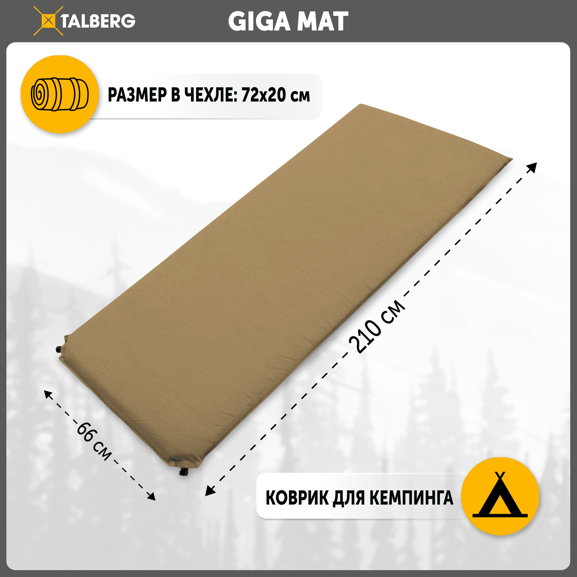 Купить Самонадувающийся коврик Talberg GIGA Mat 210 x 66 x 8 см, бежевый