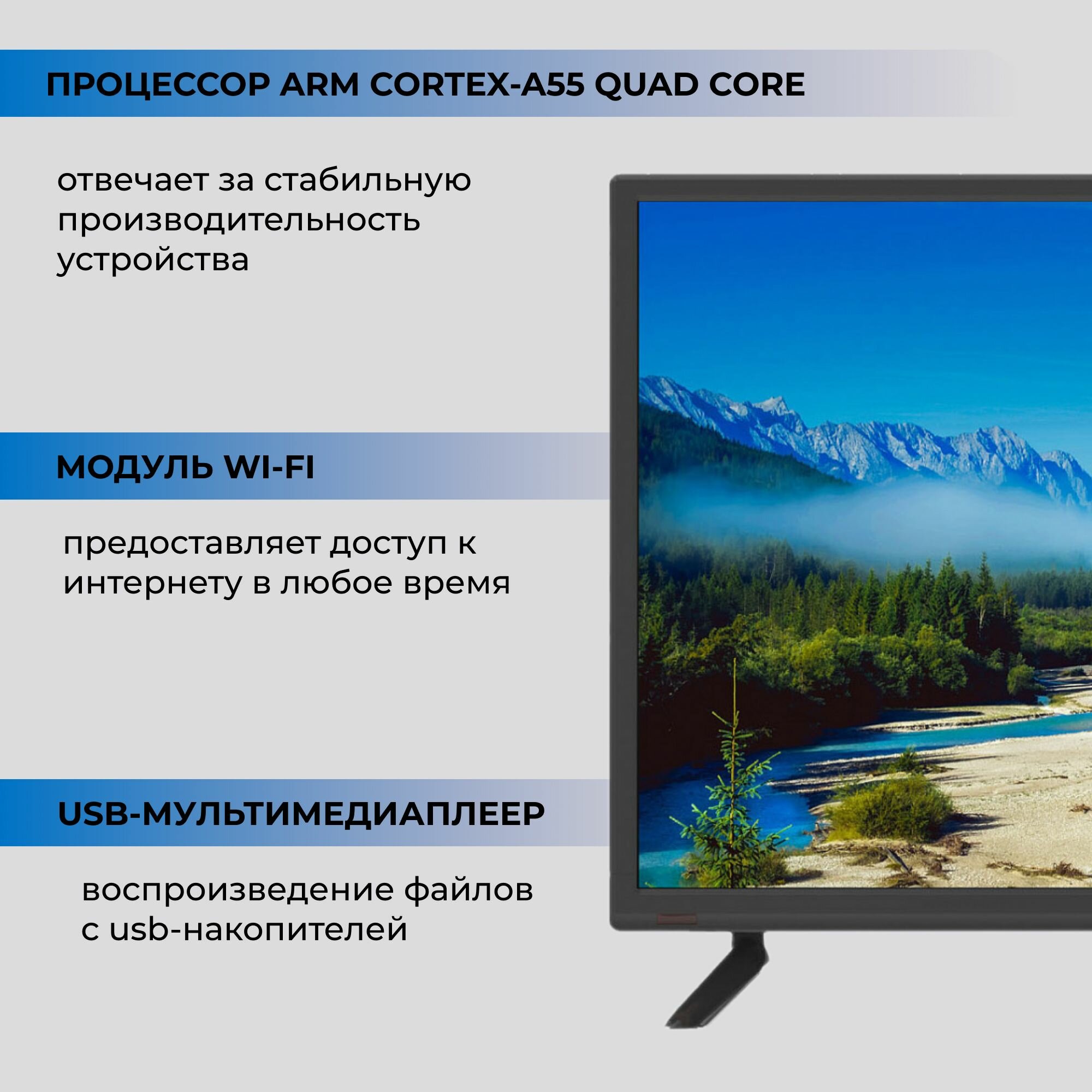 Телевизор Yuno ULX-24TCS221 (24", HD, Smart TV, Яндекс.ТВ, Wi-Fi, черный)
