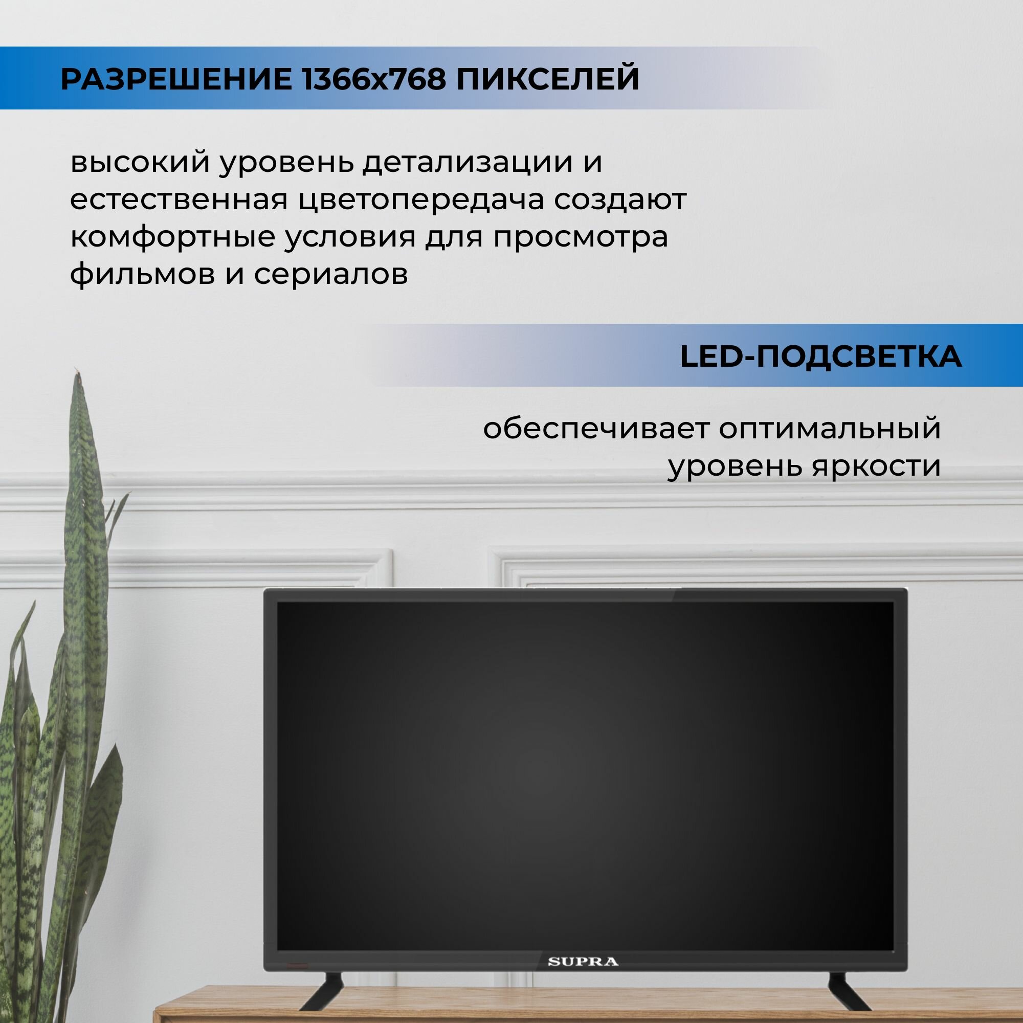 Телевизор LED Supra 23.6 STV-LC24ST0045W черный/HD READY/50Hz/DVB-T/DVB-T2/DVB-C/USB/WiFi/Smart TV (RUS)