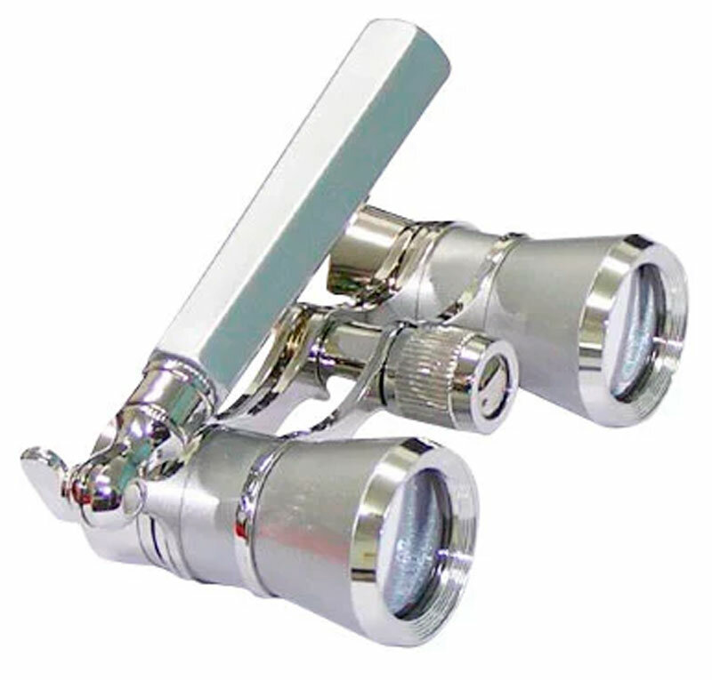 | Дополнительная информация | Миниатюрный бинокль-лорнет с увеличением 3x Галилеевская оптическая схема, полное многократное просветление линз Центральный механизм настройки резкости, фокусировка на расстоянии от 3,5 метра Удобная складная ручка с изменяемой длиной Презентабельный металлический корпус |