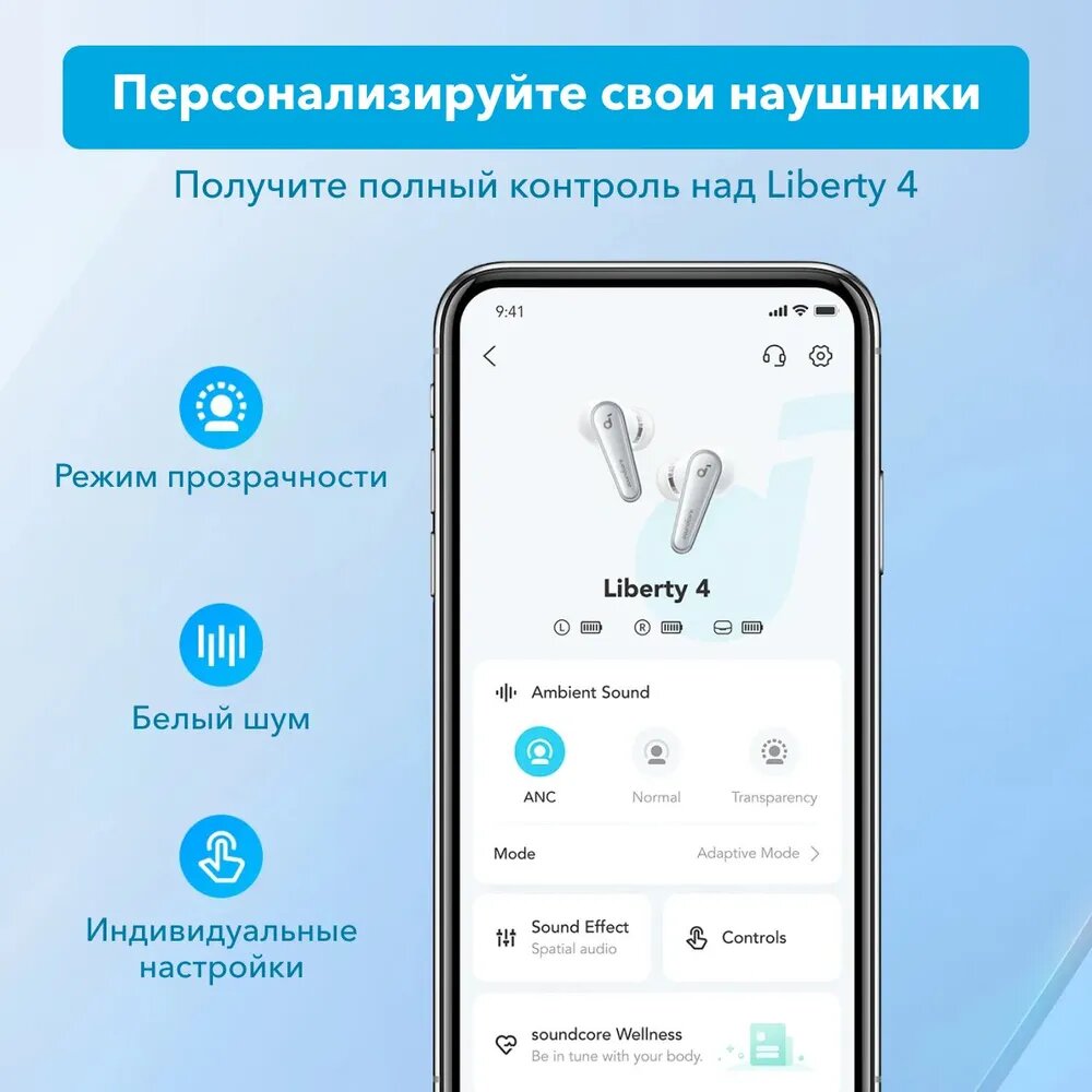 СохранитьБеспроводные наушники Soundcore Liberty 4 / Bluetooth наушники / TWS наушники / Наушники с качественным звуком / Наушники с шумоподавлением / Наушники для разговоров, белый интересное: