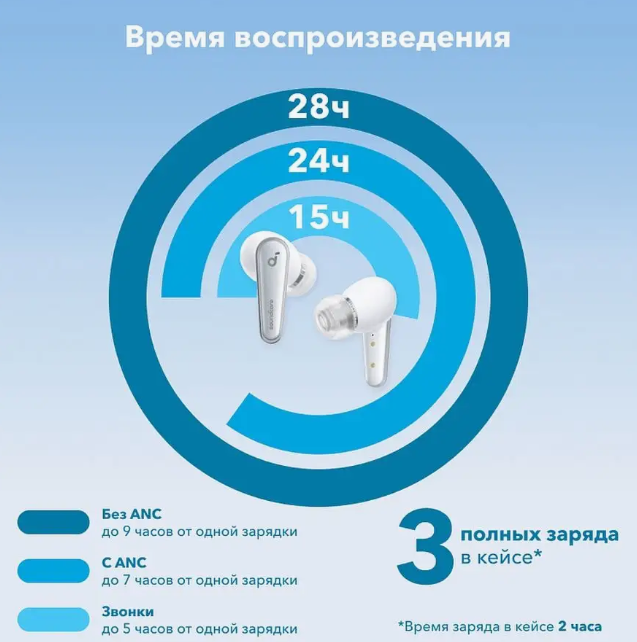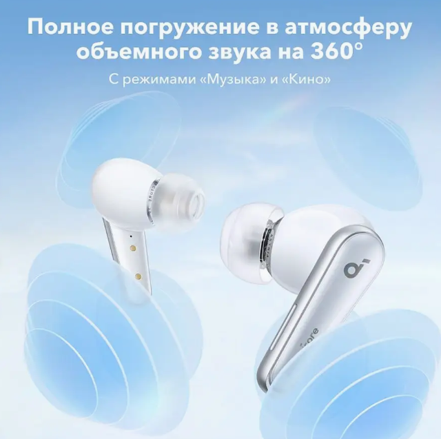 | Дополнительная информация | приложение soundcore App, объемное аудио 360°, поддержка быстрой и беспроводной зарядки, Амбушюры CloudComfort |