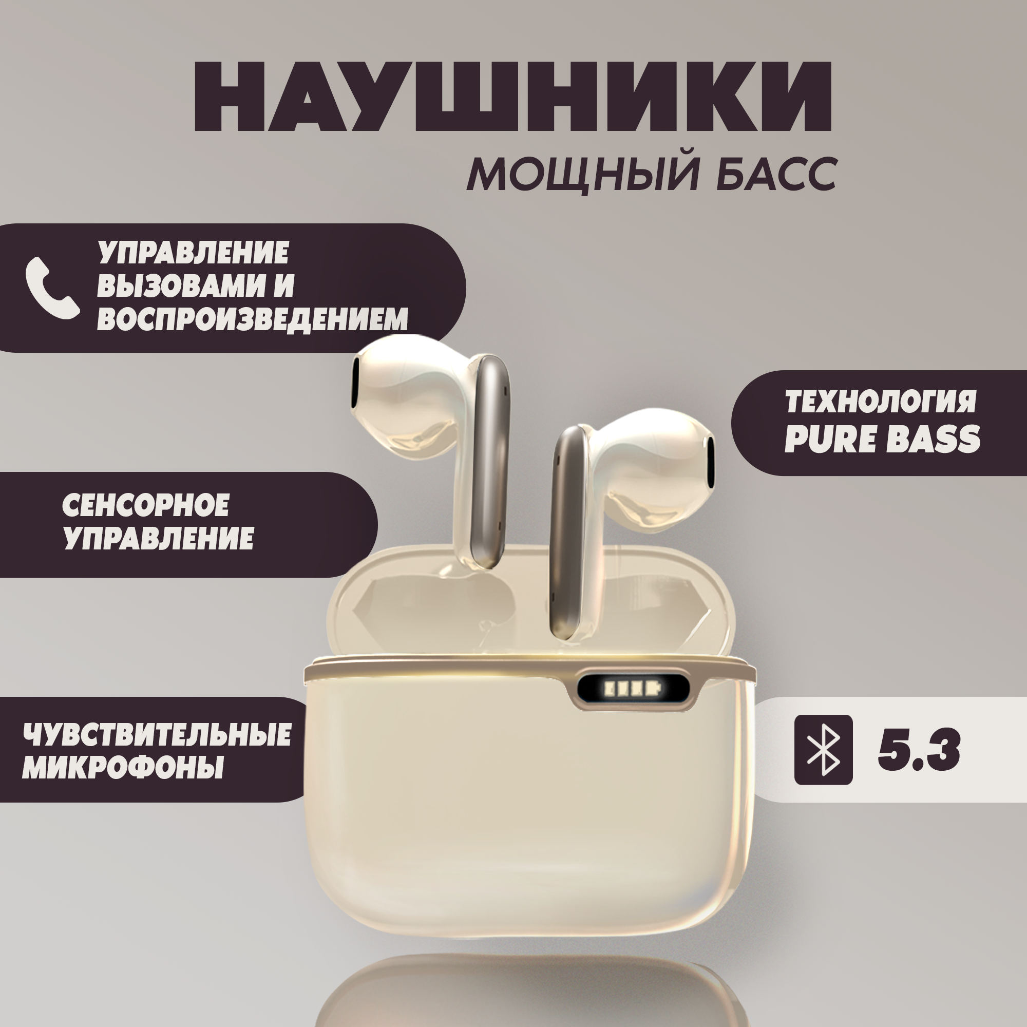 Наушники беспроводные с микрофоном, WALКЕR, WTS-55, белые, сенсорное управление // наушники как apple, airpods pro 2, jbl наушники