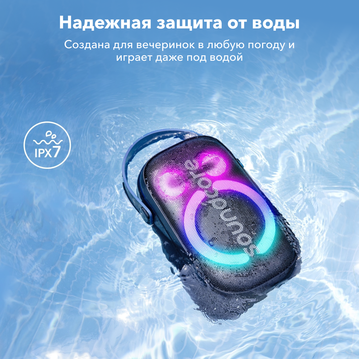 | Особенности | влагозащищенный корпус / световые эффекты / стереозвук |