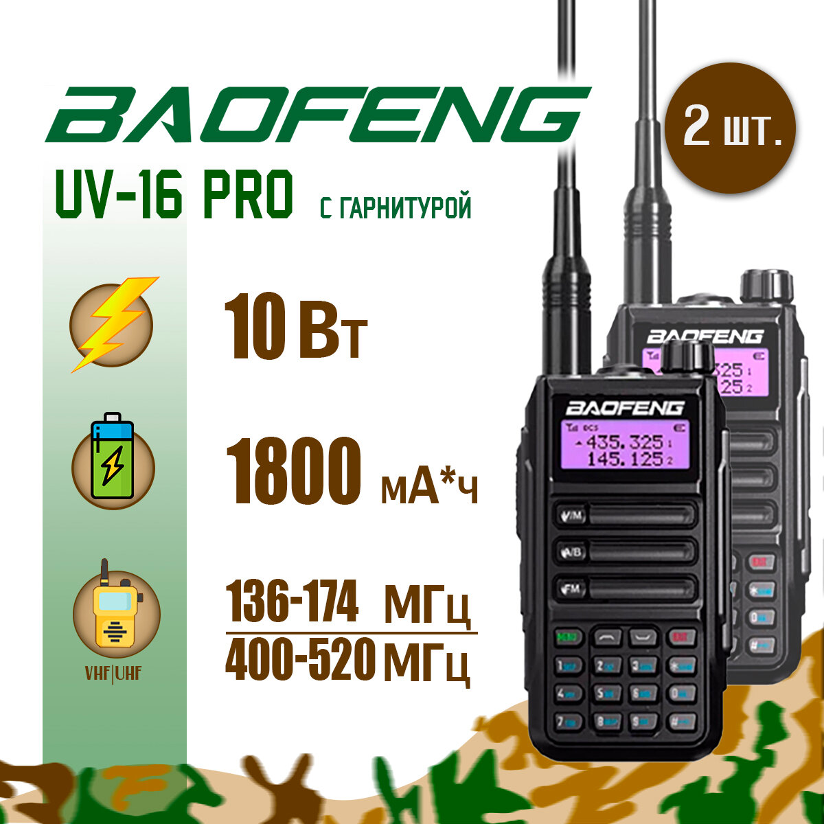 Портативная радиостанция Baofeng UV-16 Pro 10 Вт / Черная комплект 2 шт / UHF; VHF интересное: