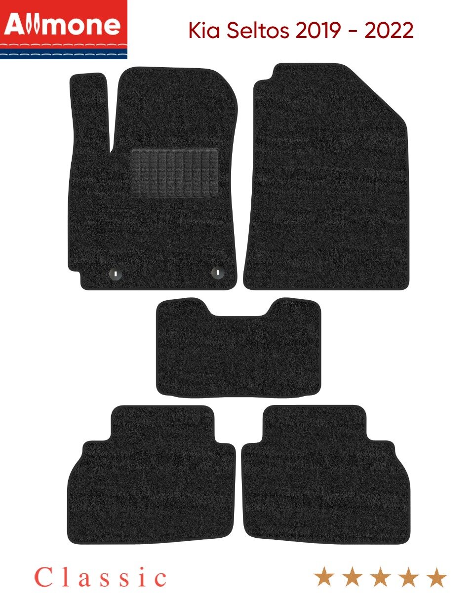 Коврики в салон текстильные Allmone "Классик" для Kia Seltos (suv) 2019 - 2022, черные, 5шт. / Киа Селтос