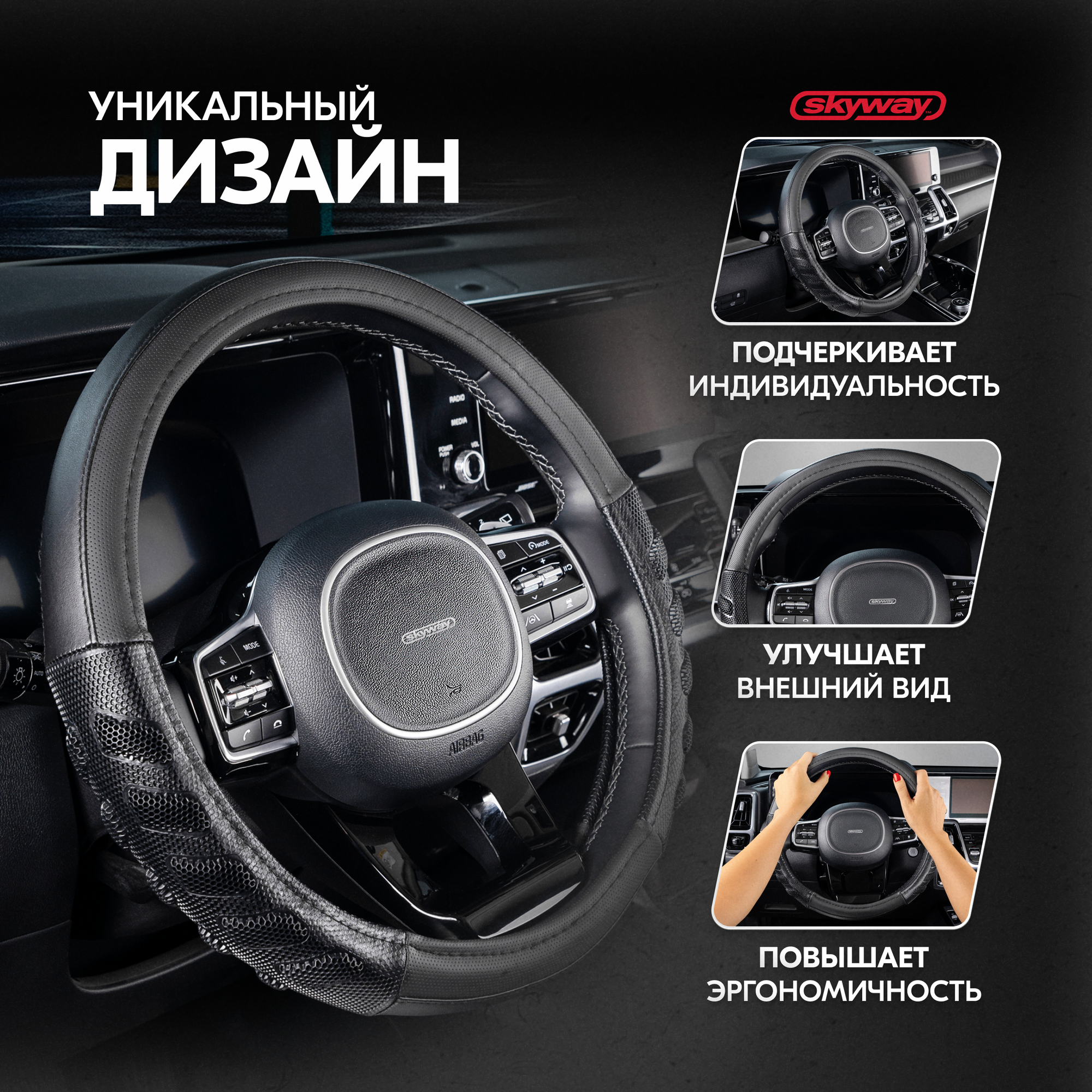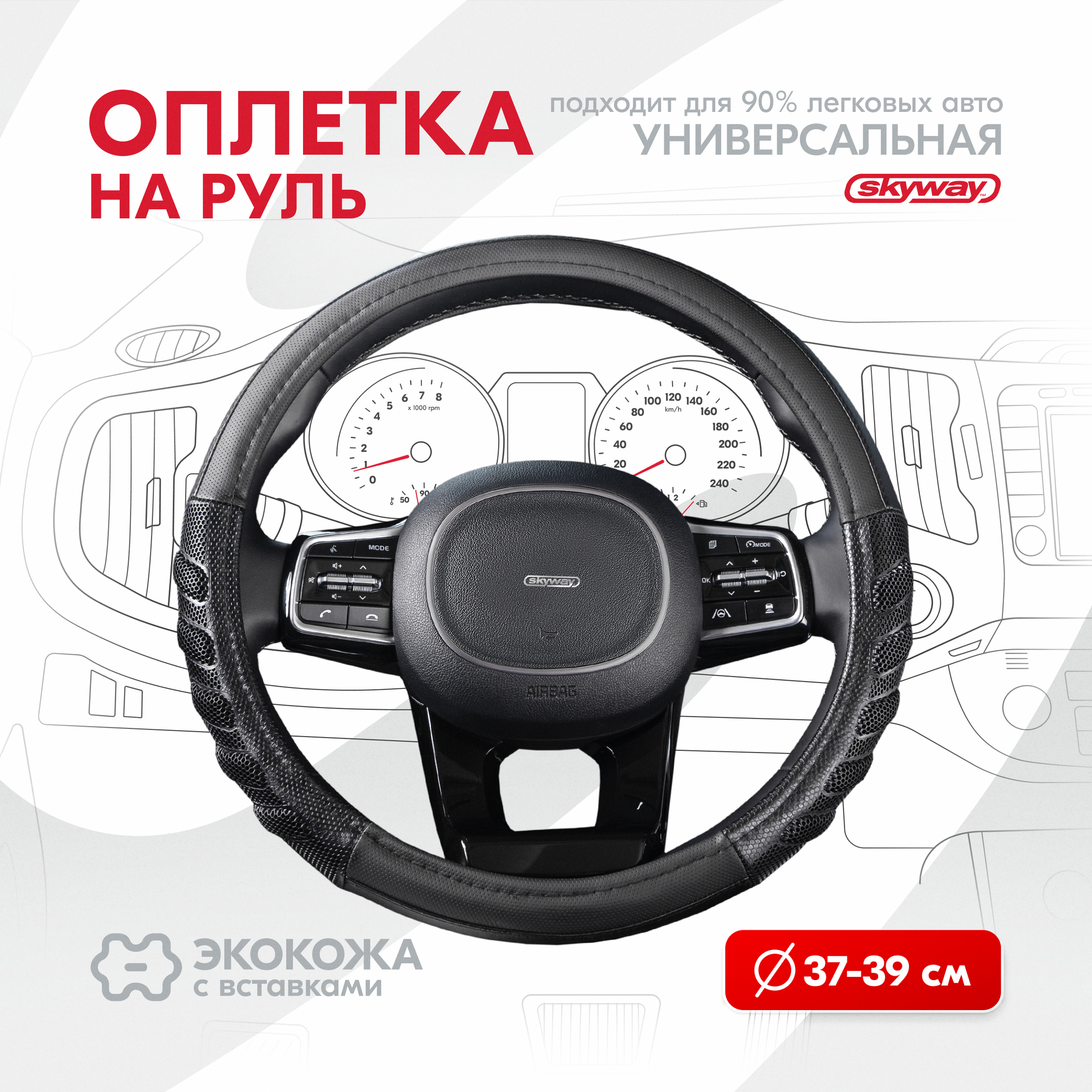 Оплетка на руль Racer-1 SKYWAY M (37-39) черный экокожа, S01102414