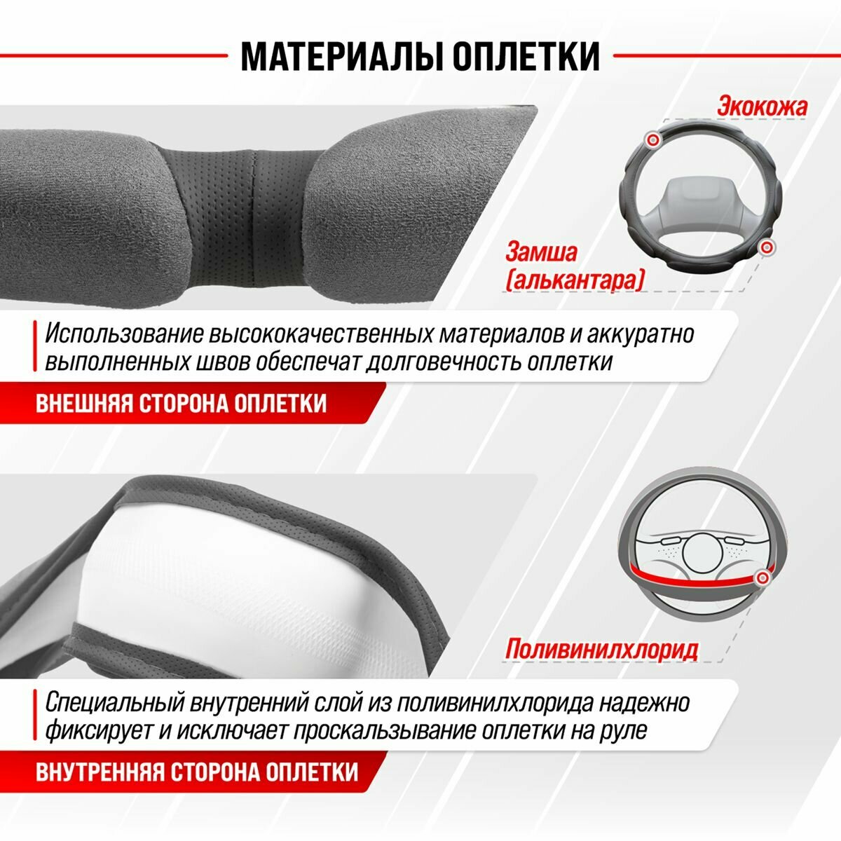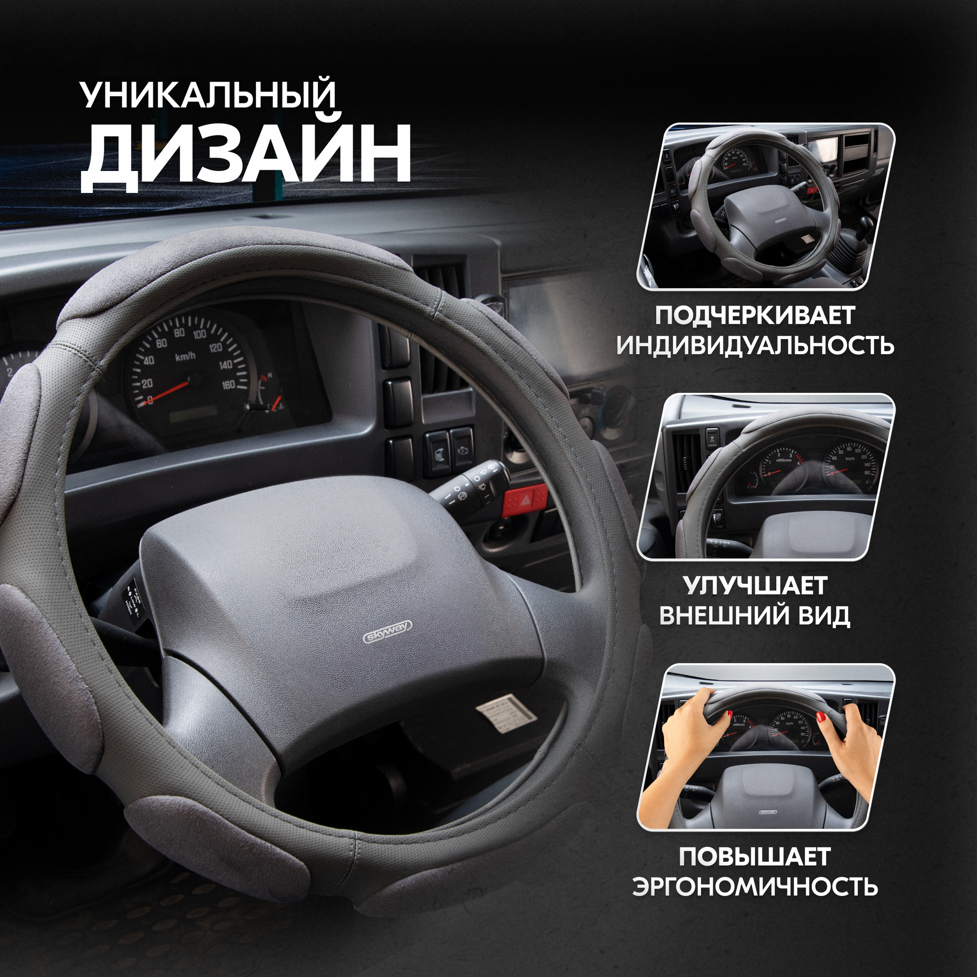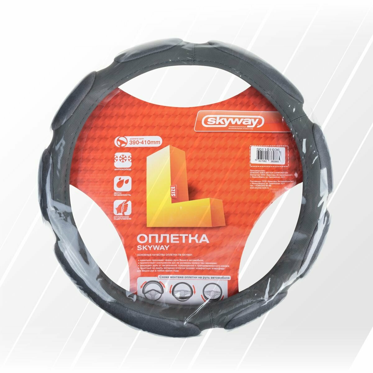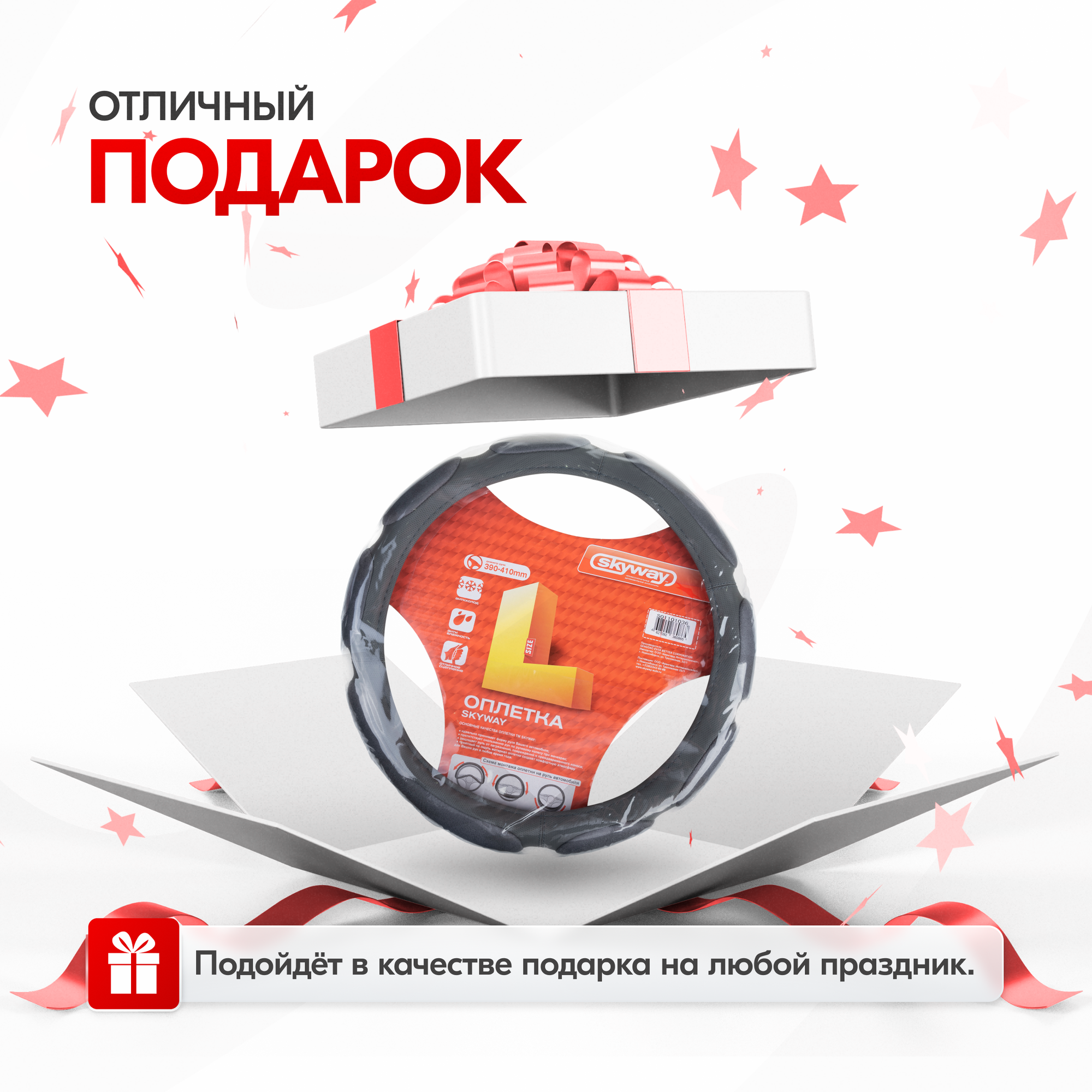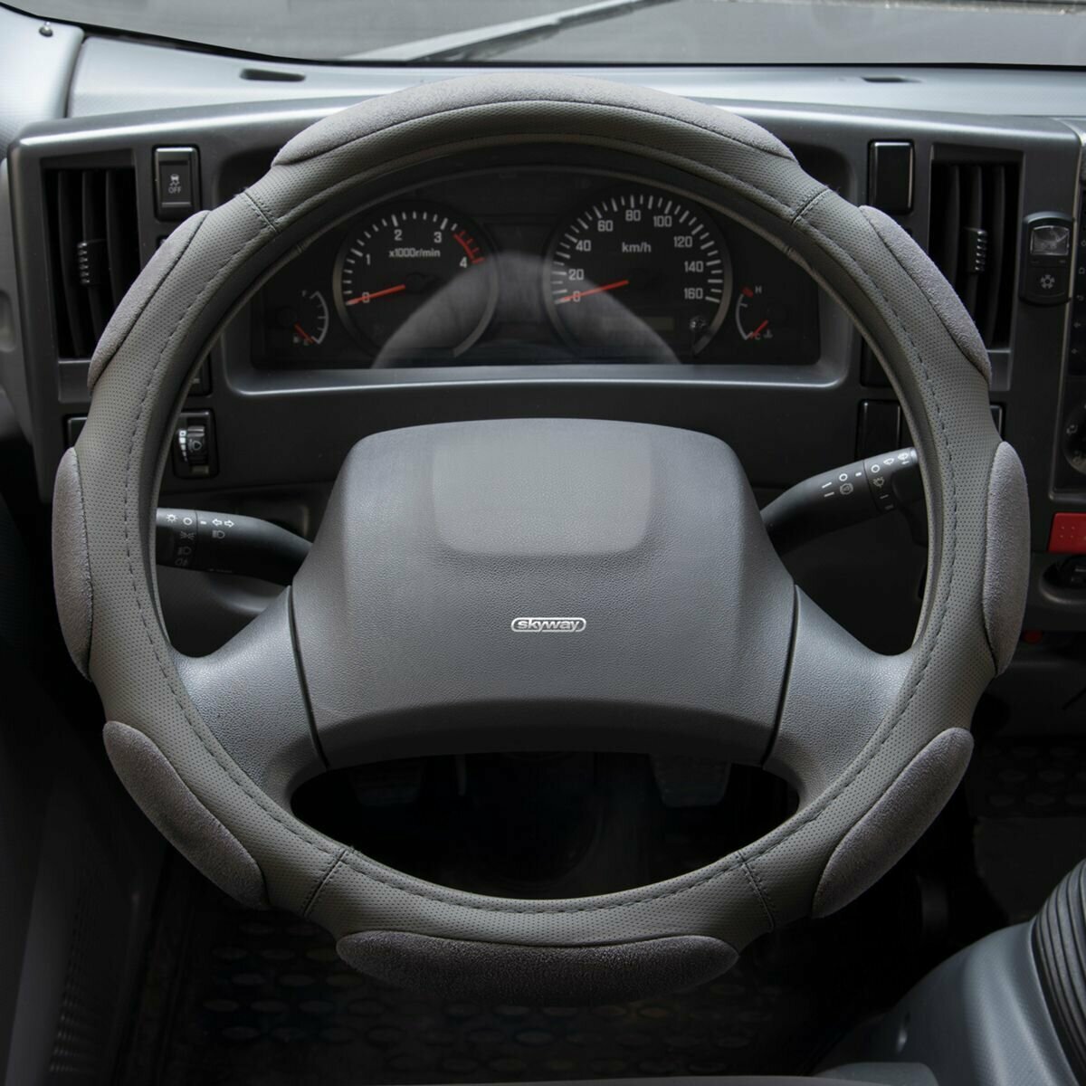 Оплетка на руль Top-12 SKYWAY M (37-39) серый экокожа, S01102501