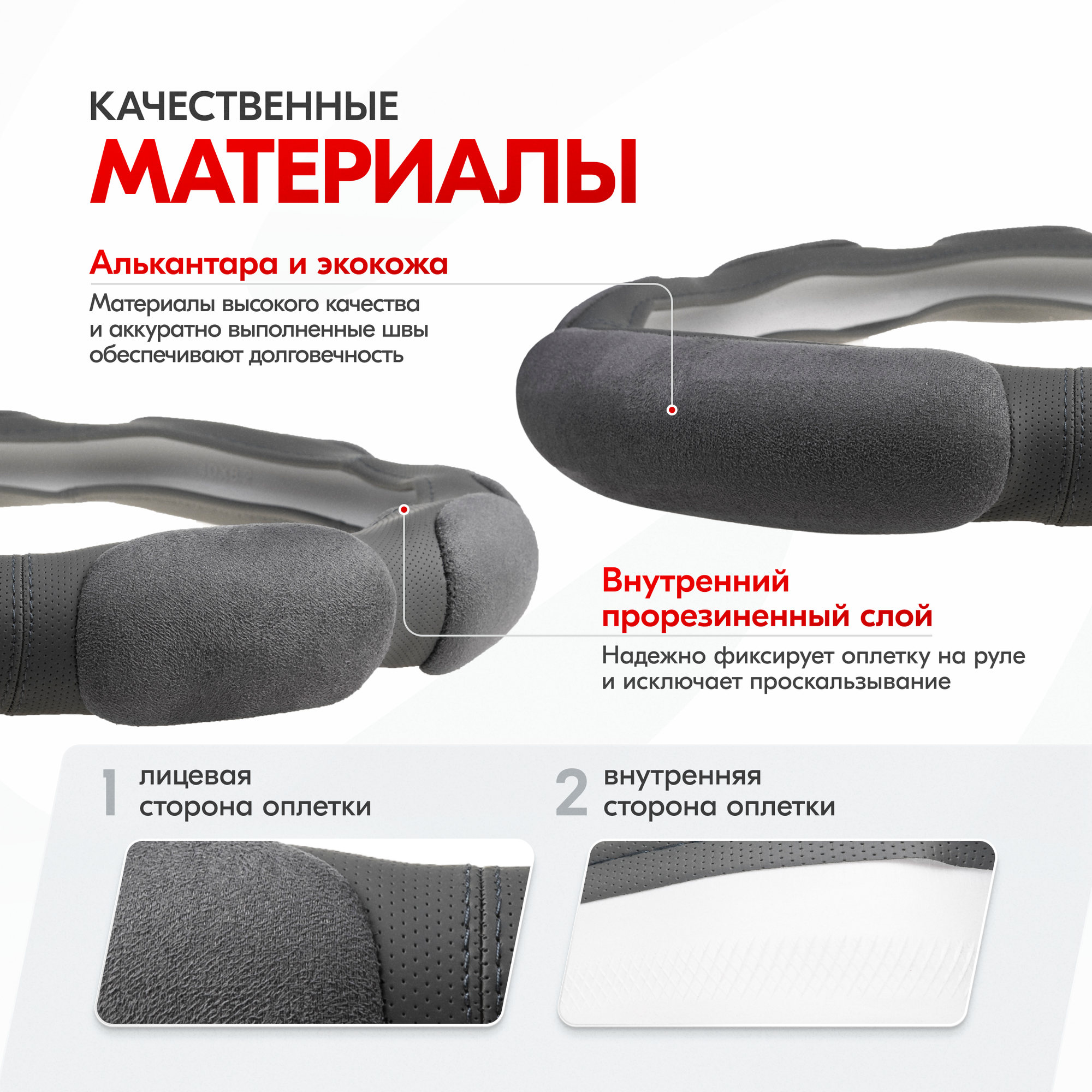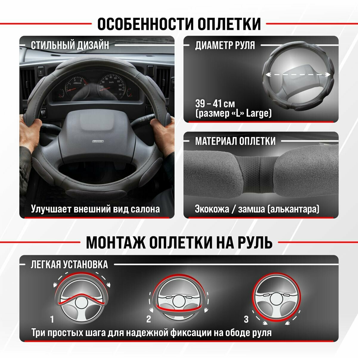 Оплетка на руль Sponge classic 8 подушечек L (39-41) серый алькантара, S01101036
