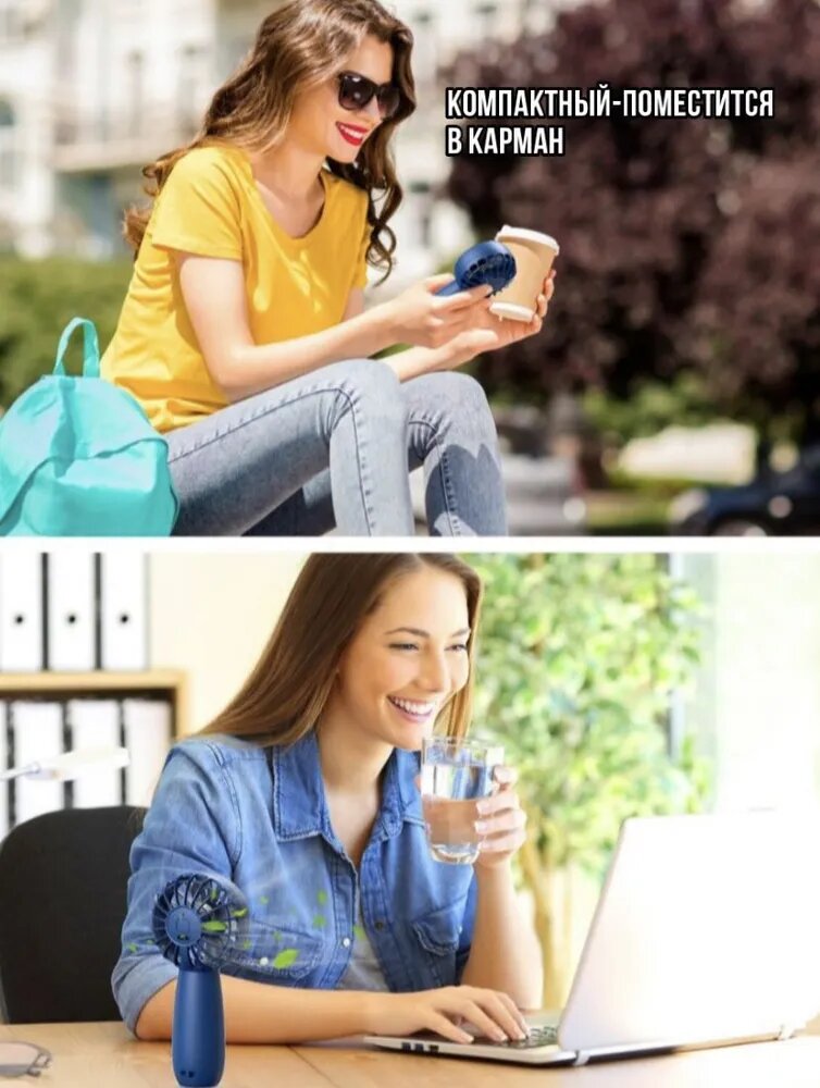настольный мини вентилятор/ маленький портативный/ юсб usb/мощный/голубой-оранжевый