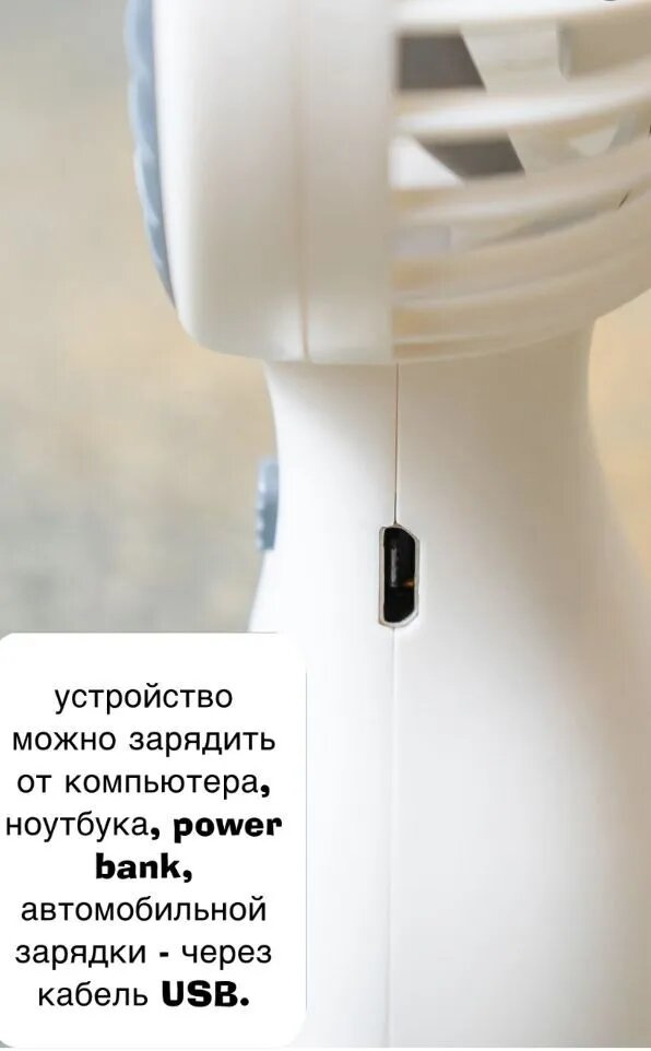 вентилятор ручной мини маленький портативный юсб usb, на аккумуляторе с фонариком, мощный, белый рога