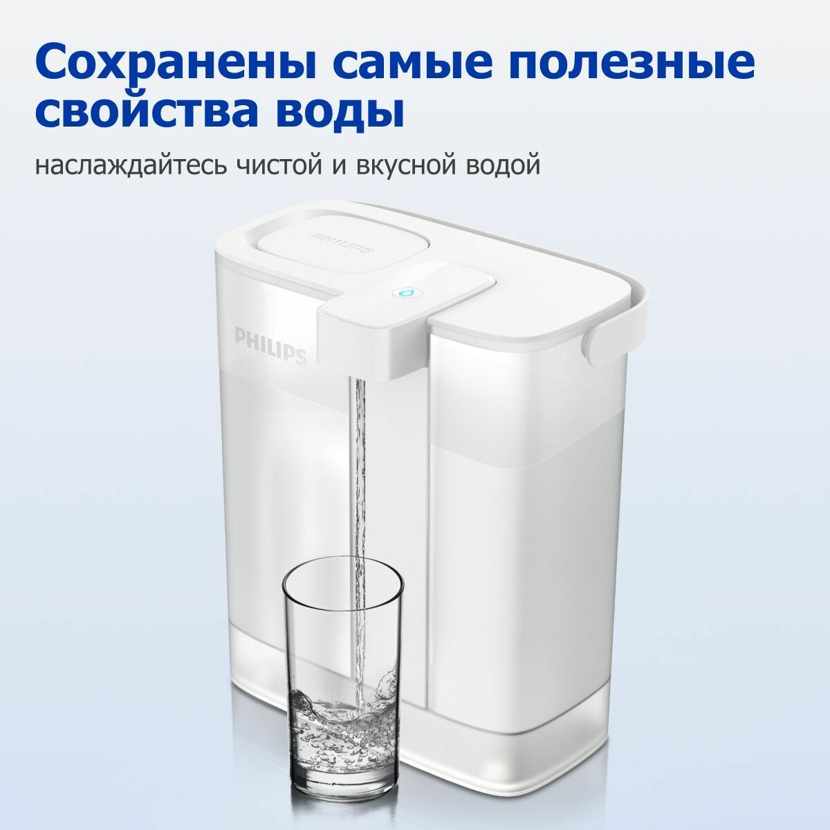 Фильтр-диспенсер для очистки воды Philips AWP2980WH, 3л, с картриджем Micro X-Clean в комплекте, монитор состояния фильтра, зарядка через USB-C, белый/прозрачный интересное: