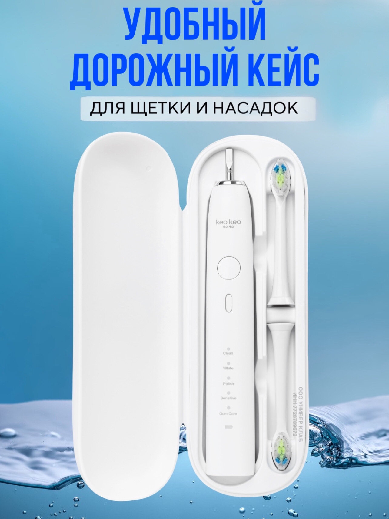 Электрическая зубная щетка Звуковая Keo Keo Richdent Easycare, белая 2 насадки, дорожный чехол, 5 режимов работы