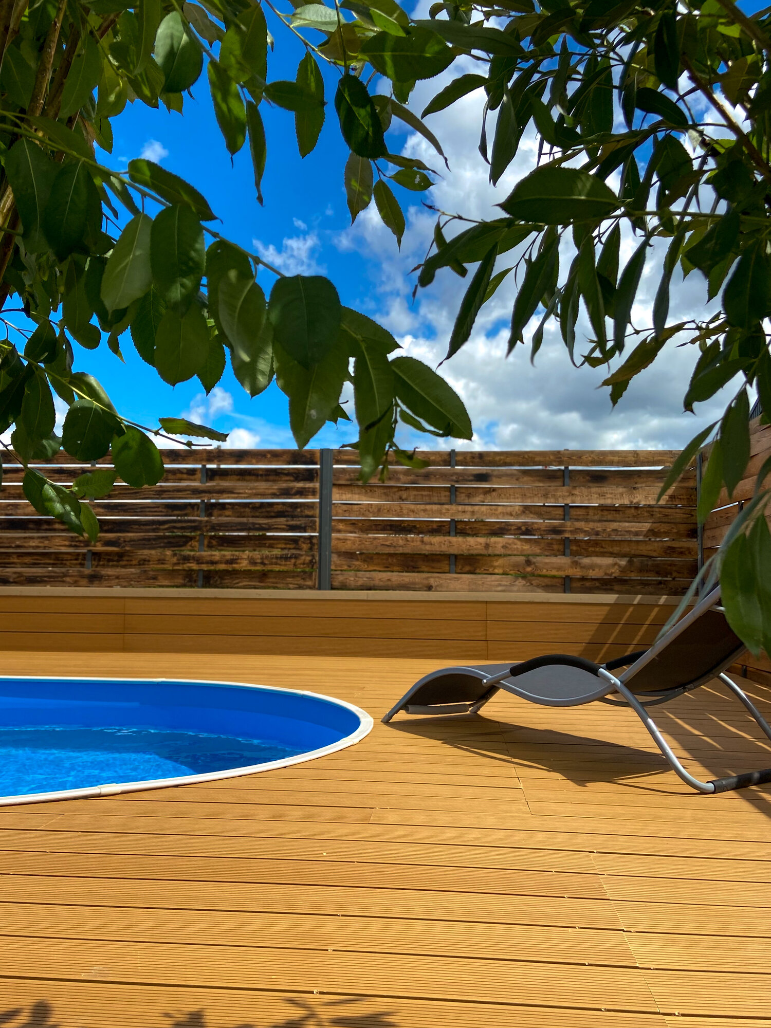 Бассейн лагуна овальный вкапываемый 3,5 х 2,5 х 1,25 м, Светлое дерево чаша 0,6 мм