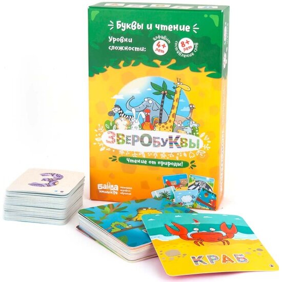 Игра настольная развивающая «Зверобуквы» 105 обучающих карточек, банда умников