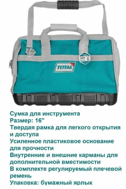 Сумка для инструмента 16" жесткое дно TOTAL интересное: