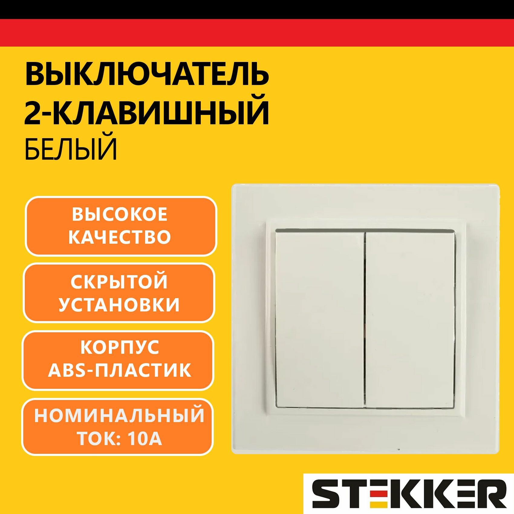 Выключатель 2-клавишный, , PSW10-9004-01, 250В, 10А, серия Эрна, белый, STEKKER 39044 (1 шт.)
