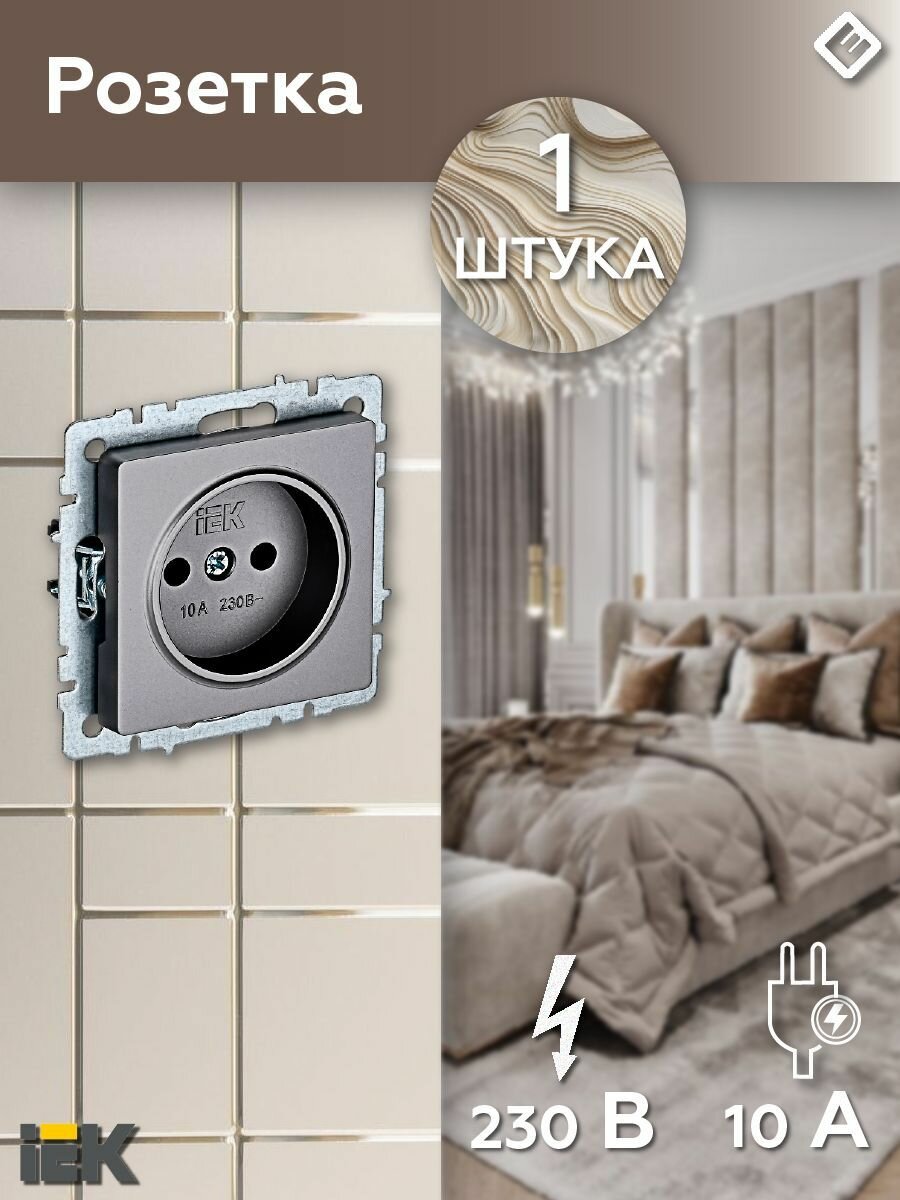 BRITE Розетка без заземления без защитных шторок 10А РС10-1-0-БрГ графит , IEK BR-R10-10-K53 (1 шт.)