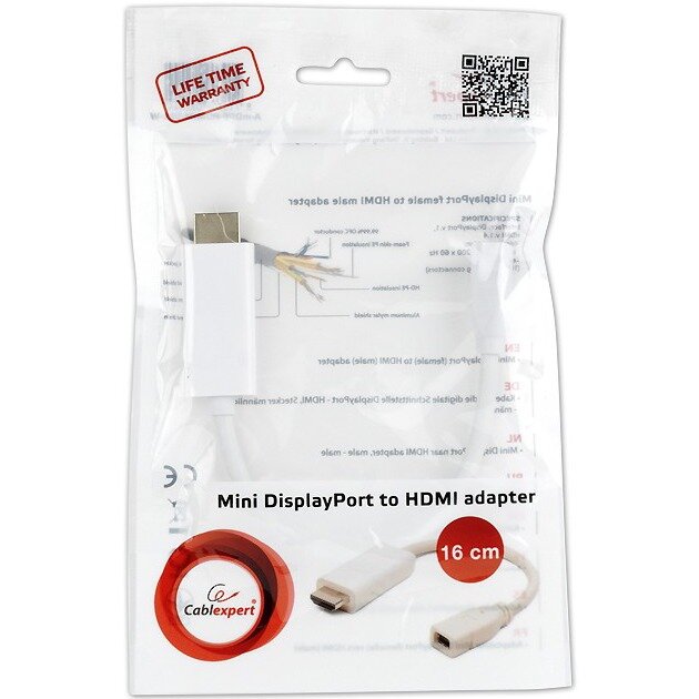 Переходник miniDisplayPort - HDMI, Cablexpert A-mDPF-HDMIM-001-W, 20F/19M, длина 10см, белый, пакет .