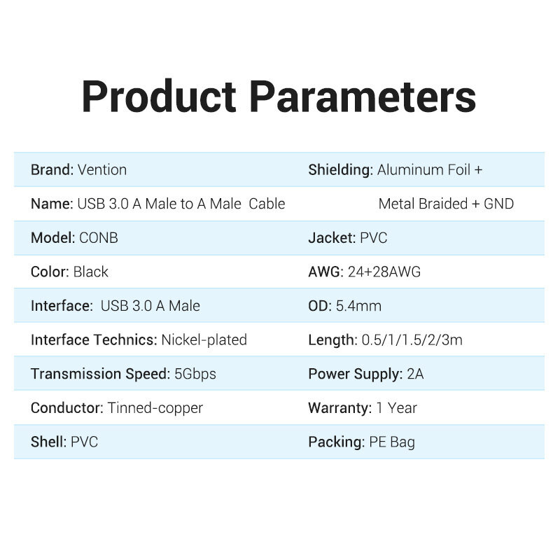 Кабель Vention USB 3.0 AM/AM - 0.5 м (CONBD) Кабель Vention USB 3.0 AM/AM - 0.5м CONBD
