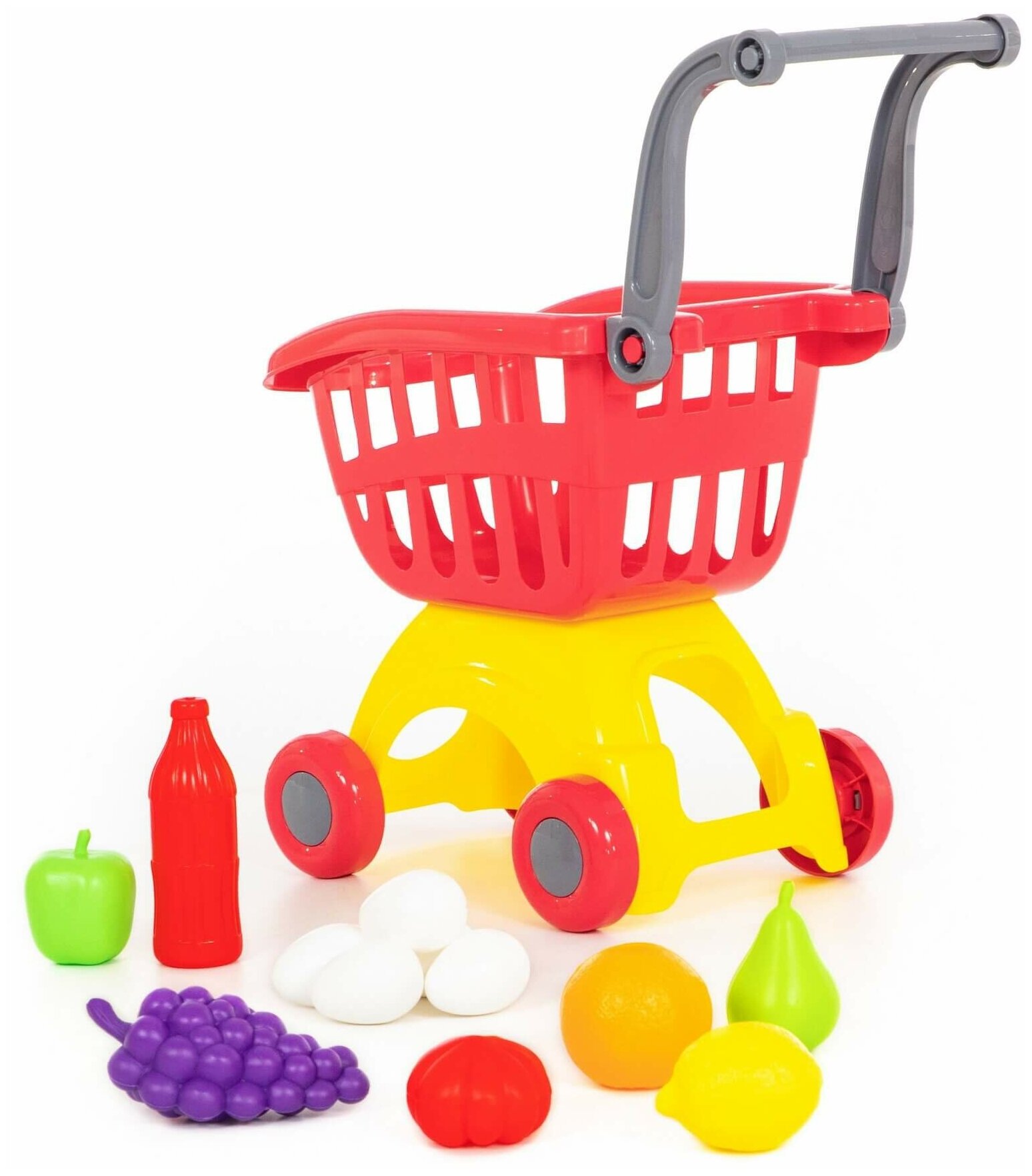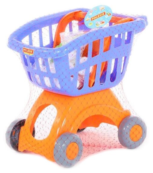 Тележка для маркета Полесье "Мини" + набор продуктов №14 (12 элементов) (в сеточке) (71385)