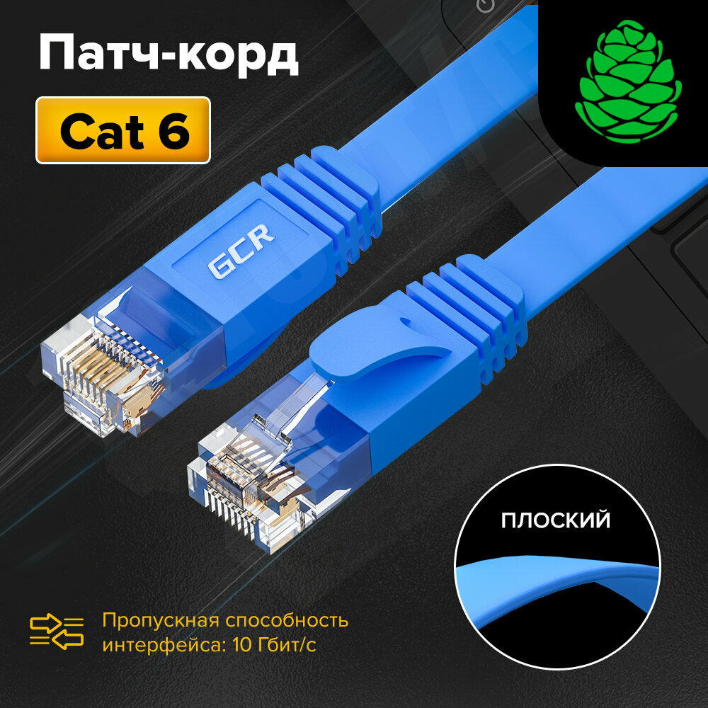 GCR Патч-корд Prof плоский прямой 7.5m, UTP медь кат.6, синий, 30 Awg, ethernet high speed 10 Гбит/с