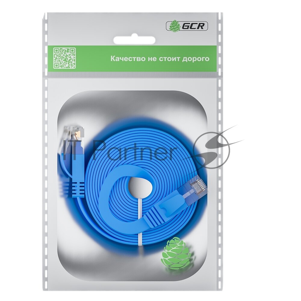GCR Патч-корд PROF плоский прямой 15.0m, UTP медь кат.6, синий, 30 AWG, ethernet high speed 10 Гбит/с, RJ45, T568B