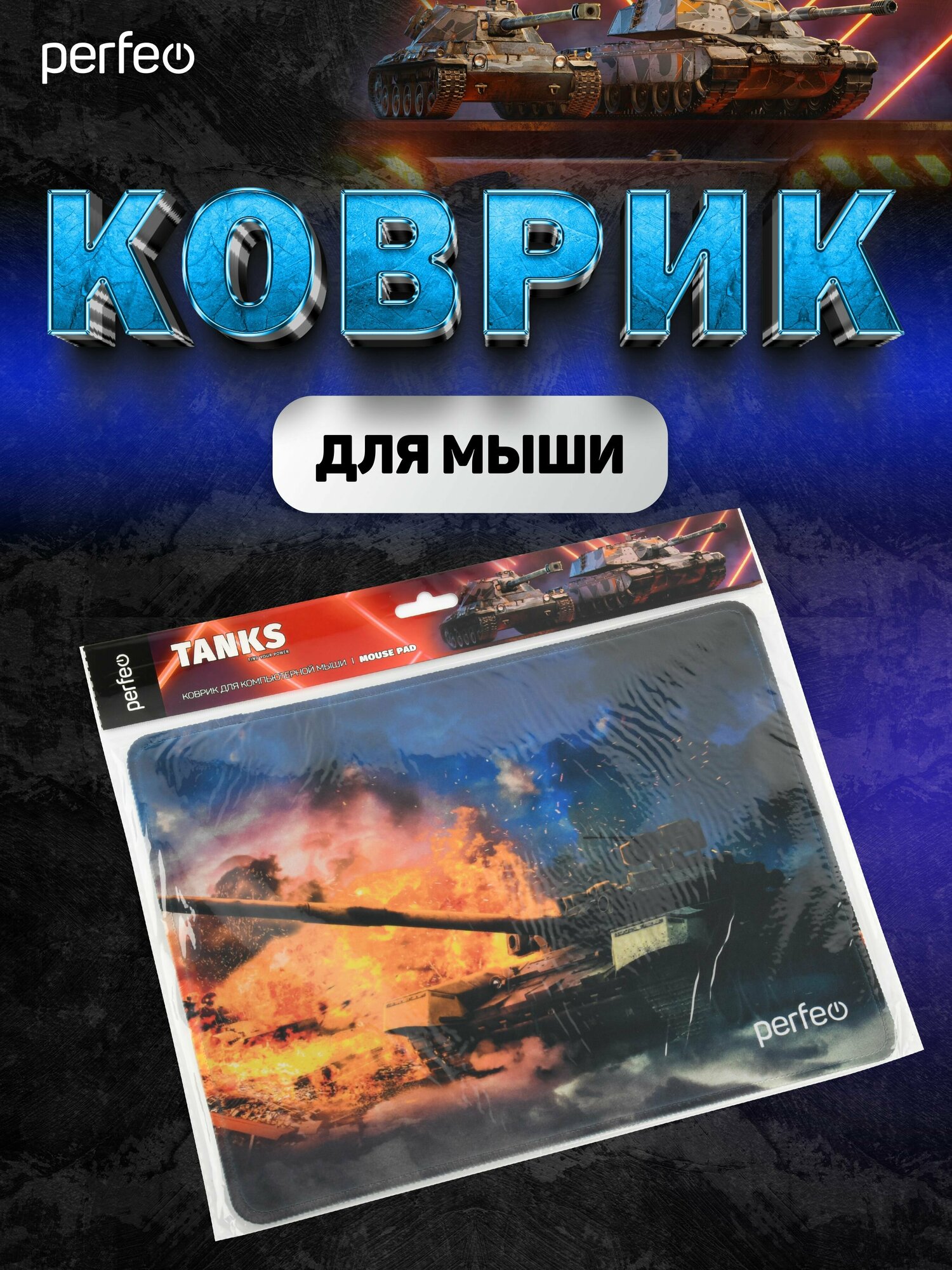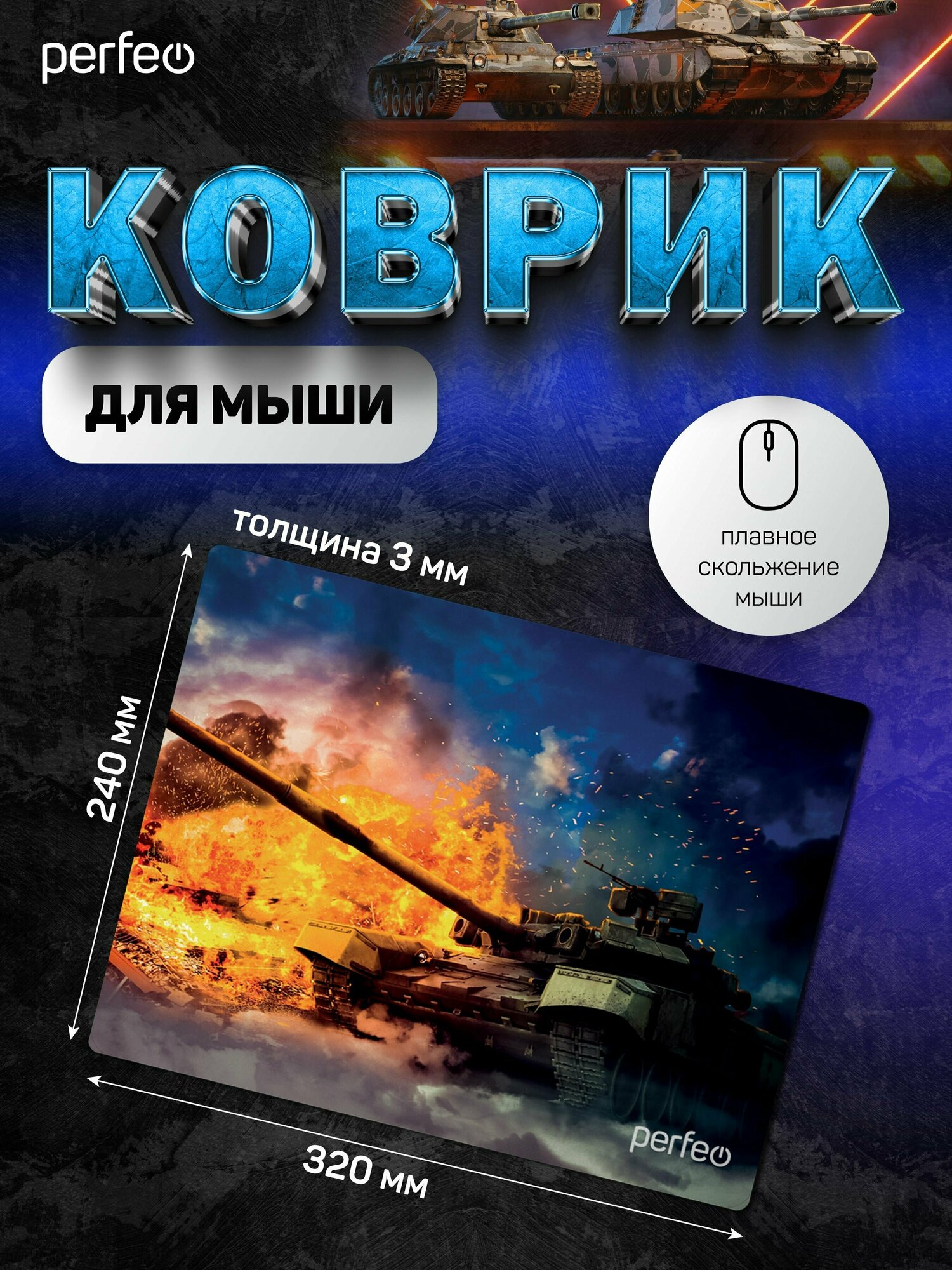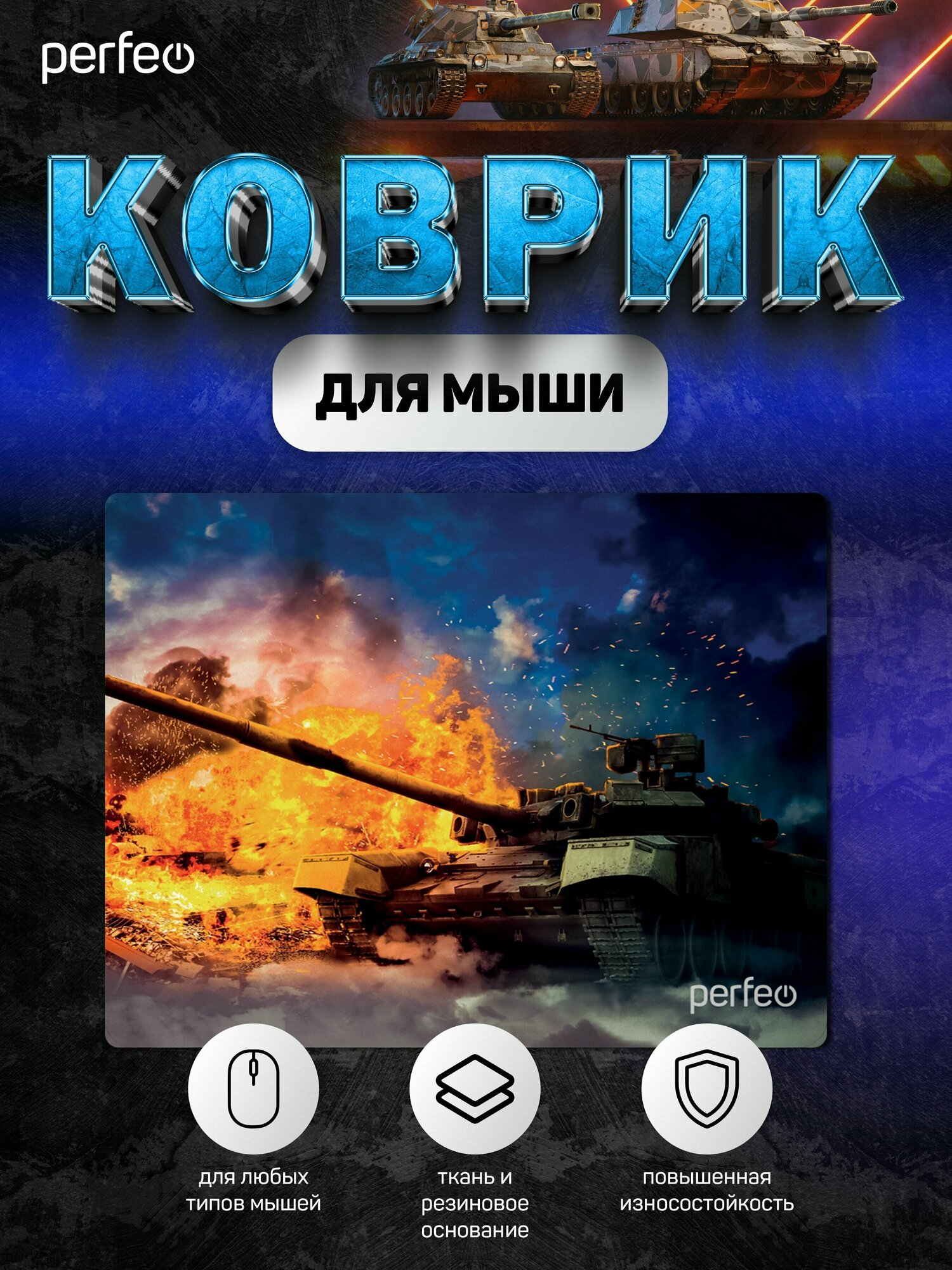 Perfeo Коврик для компьютерной мыши "Tanks", Рис.7 (180*220*2 мм), ткань+резиновое основание