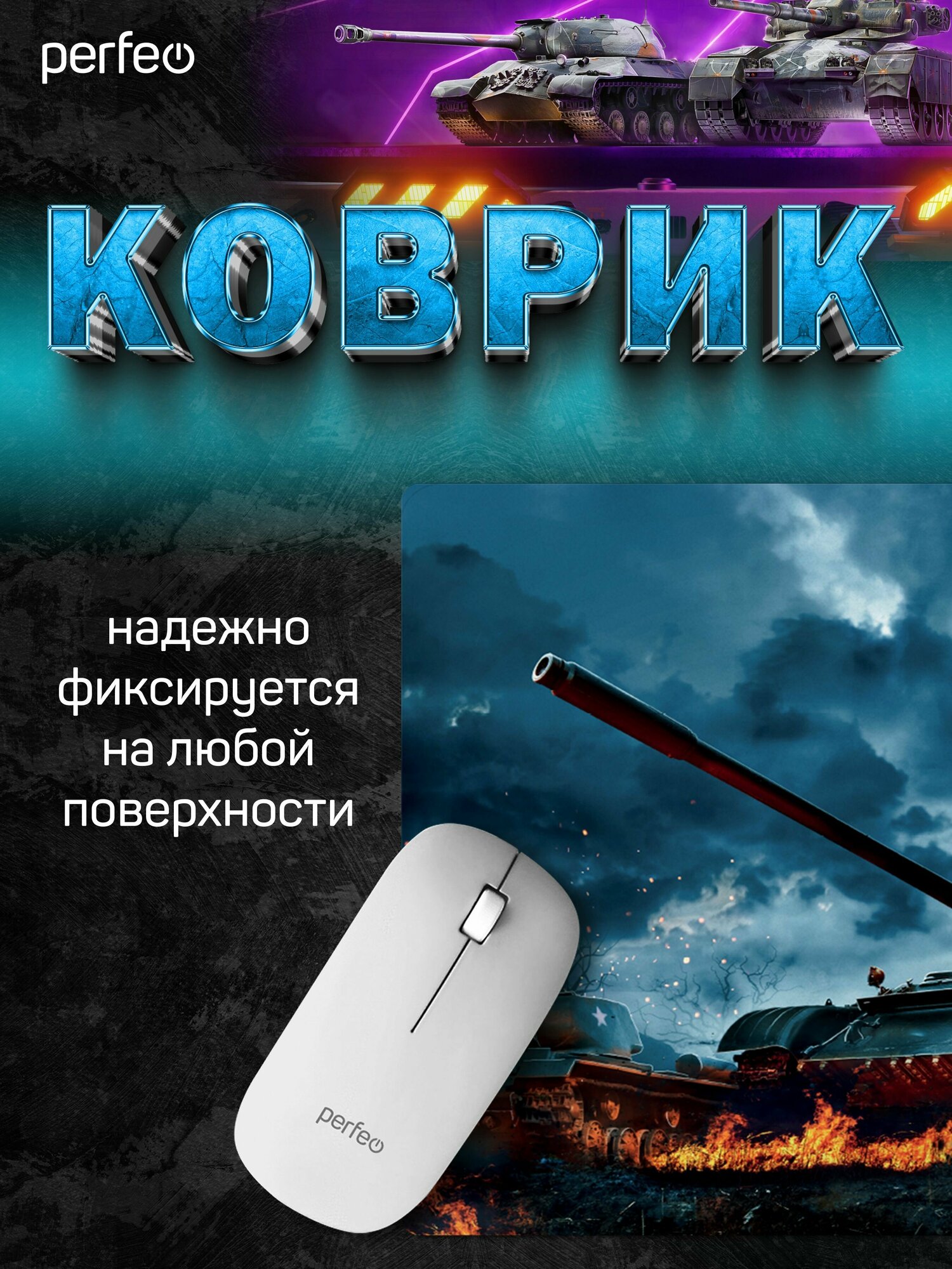 Perfeo Коврик для компьютерной мыши "Tanks", Рис.7 (180*220*2 мм), ткань+резиновое основание