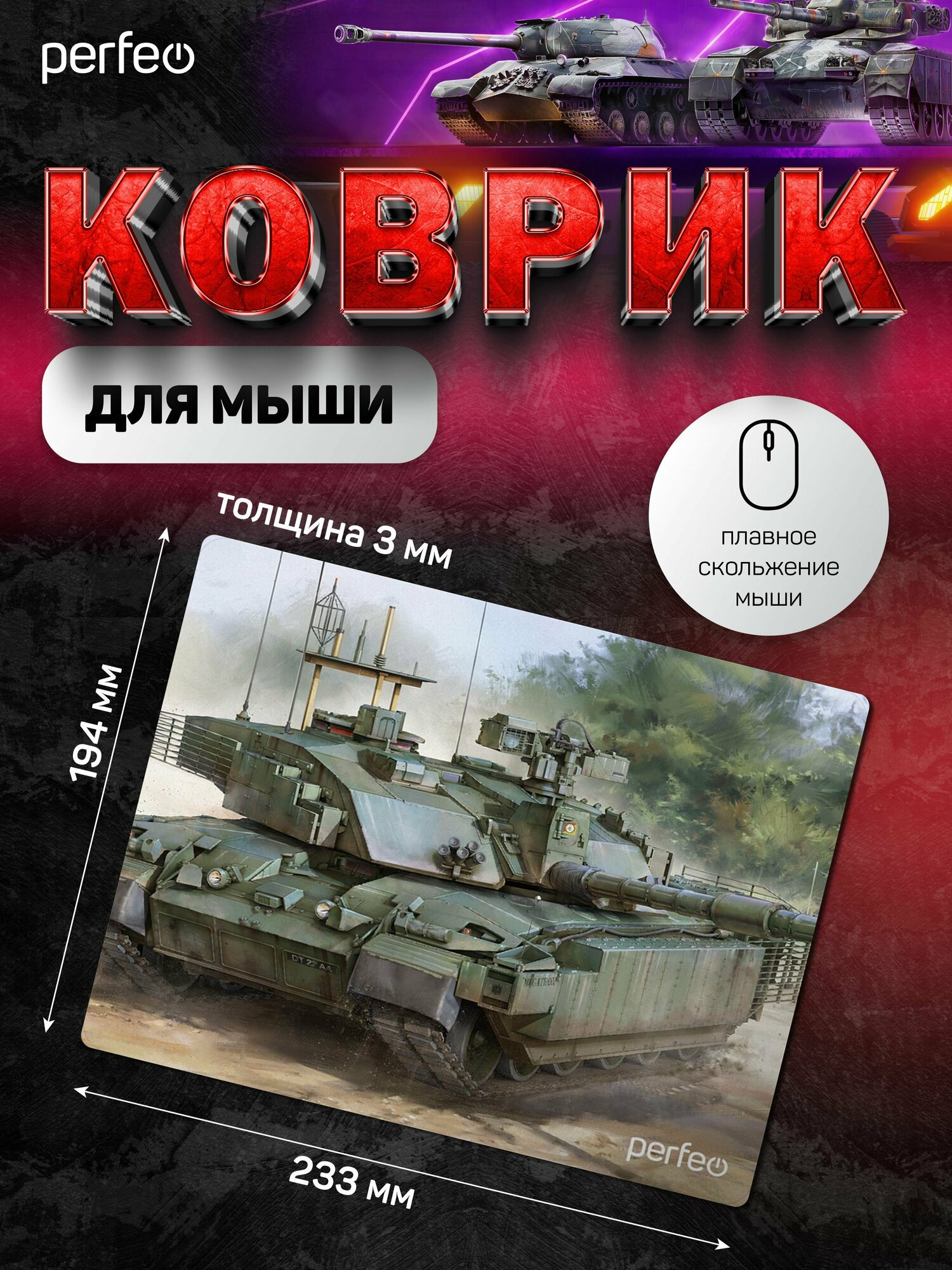 Perfeo Коврик для компьютерной мыши "Tanks", Рис.7 (180*220*2 мм), ткань+резиновое основание