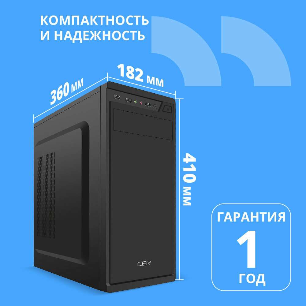 Cbr Корпус PCC-ATX-J02-450W2 Корпус ATX Miditower J02, c БП PSU-ATX450-08EC 450W 80mm , 2 USB 2.0, HD Audio+Mic, кабель питания 1.2м, Black