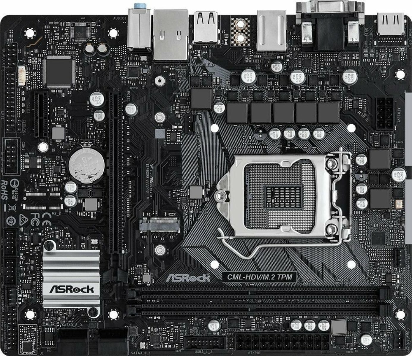 Материнская плата ASRock CML-HDV/M.2 TPM R2.0, Intel, LGA1200, H310, DDR4, VGA, DVI, HDMI, Micro-ATX